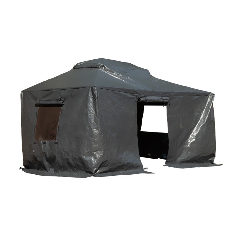 Dark Grey Pop-Up Gazebo Tent with Mesh Walls, Sun and Water Protection - Folded Dimensions: 75.2" L x 9.8" W x 9.8" H