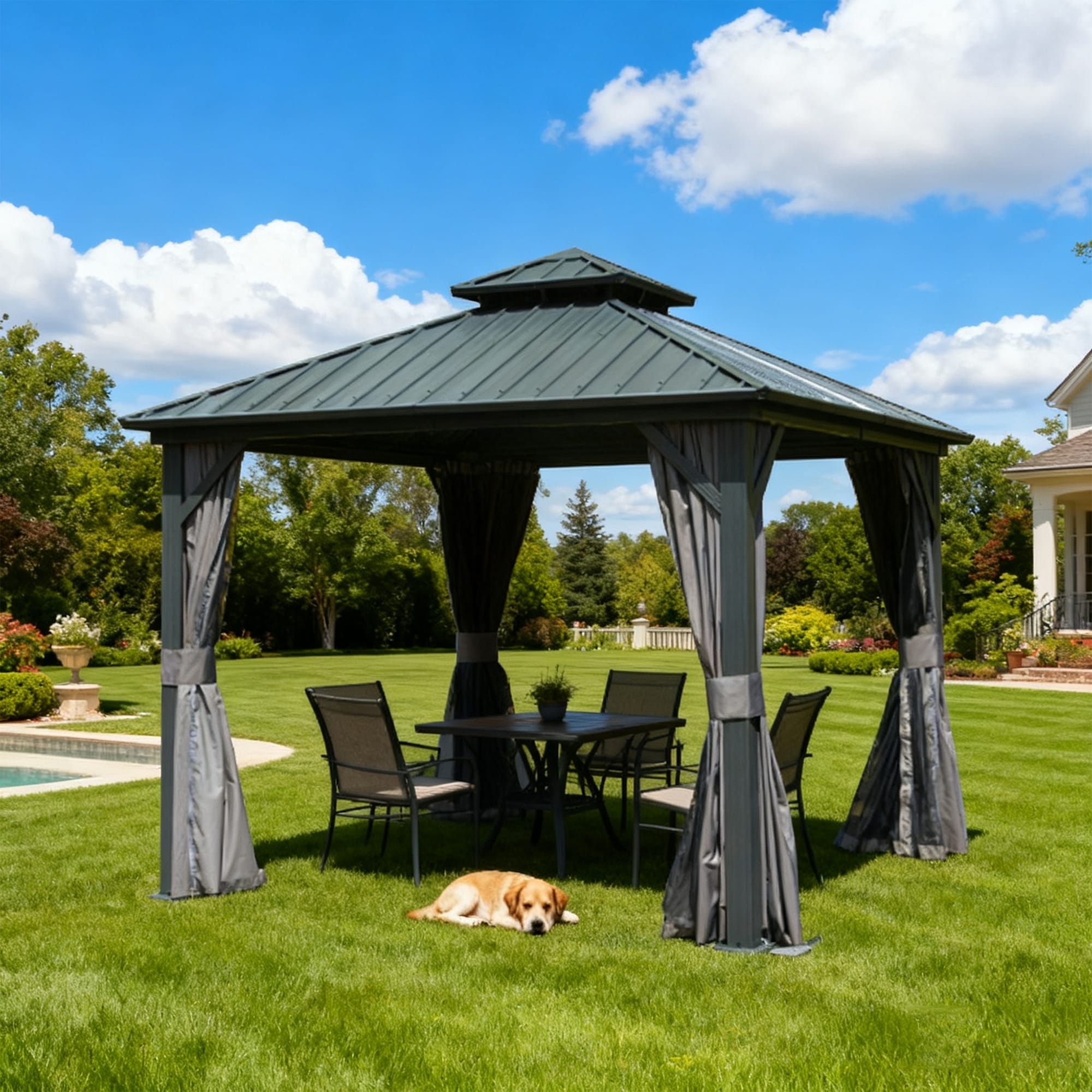 Aluminum Metal Hardtop Gazebo with Galvanized Steel Double Roof Canopy, Curtain and Netting