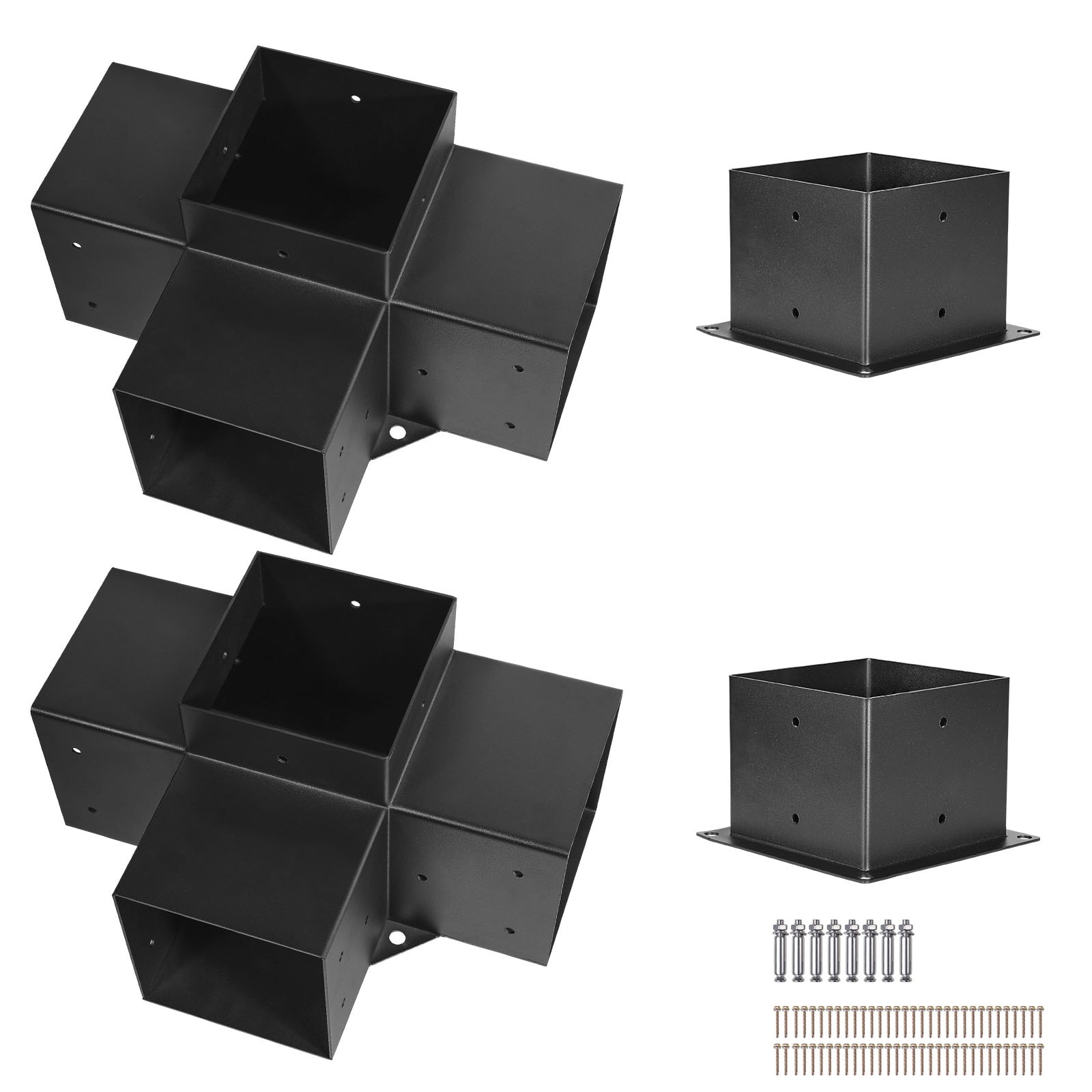 UIMOSO Pergola Kit, 3-Way Slanted Bracket for Wood Beams in Actual Size, Carbon Steel Pergola Bracket with Screws and Post Bases