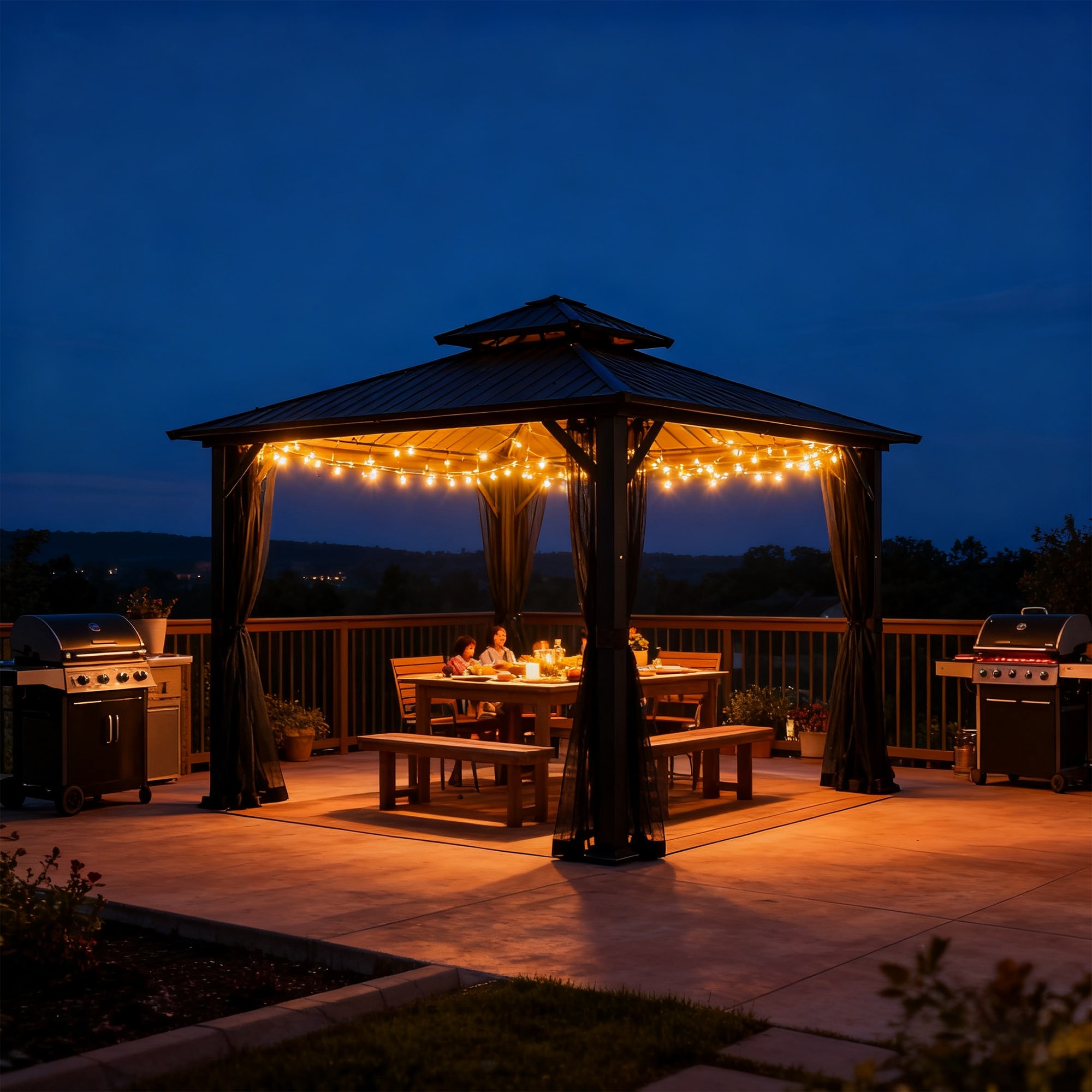Outdoor Hardtop Gazebo with Double Galvanized Steel Roof & Aluminum Frame, Featuring Curtains and Netting for Added Comfort