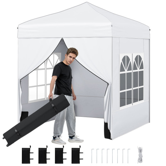 Costway 6.5 x 6.5 FT Pop up Canopy Tent with 4 Sidewalls and Wheeled Bag-white