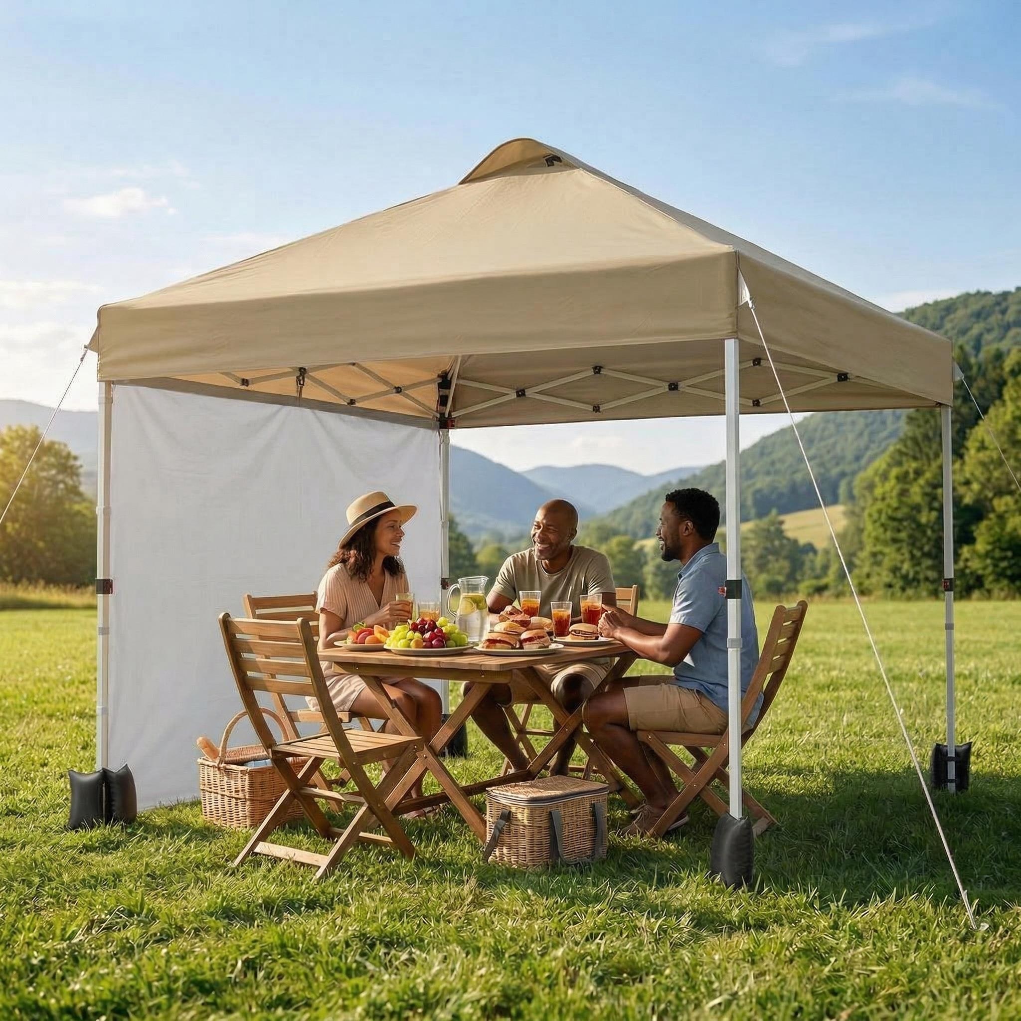 10x10 Pop Up Canopy Tent, Portable Patio Canopy with 1 Sidewall and Wheeled Bag