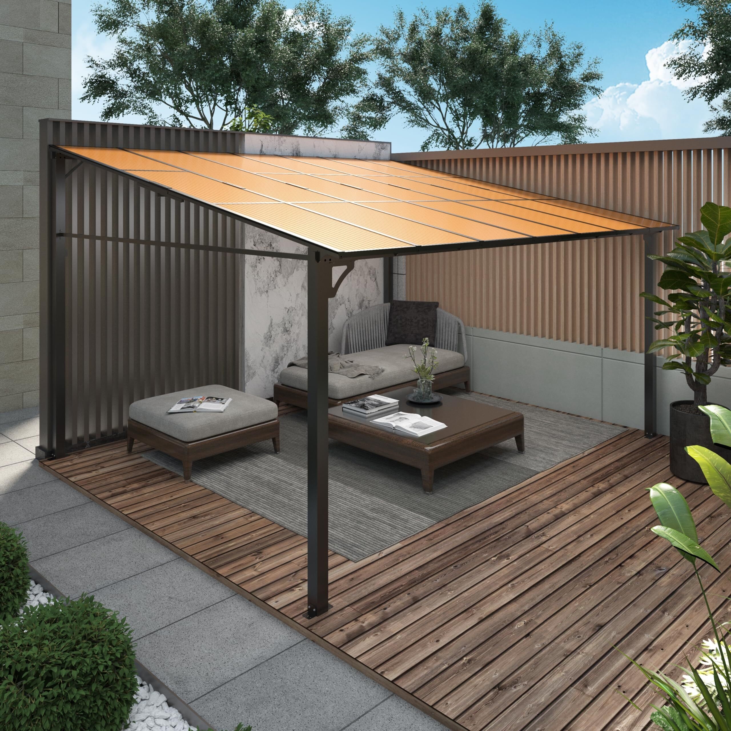Hardtop Wall Pergola with Polycarbonate Roof - Brown/Dark Gold