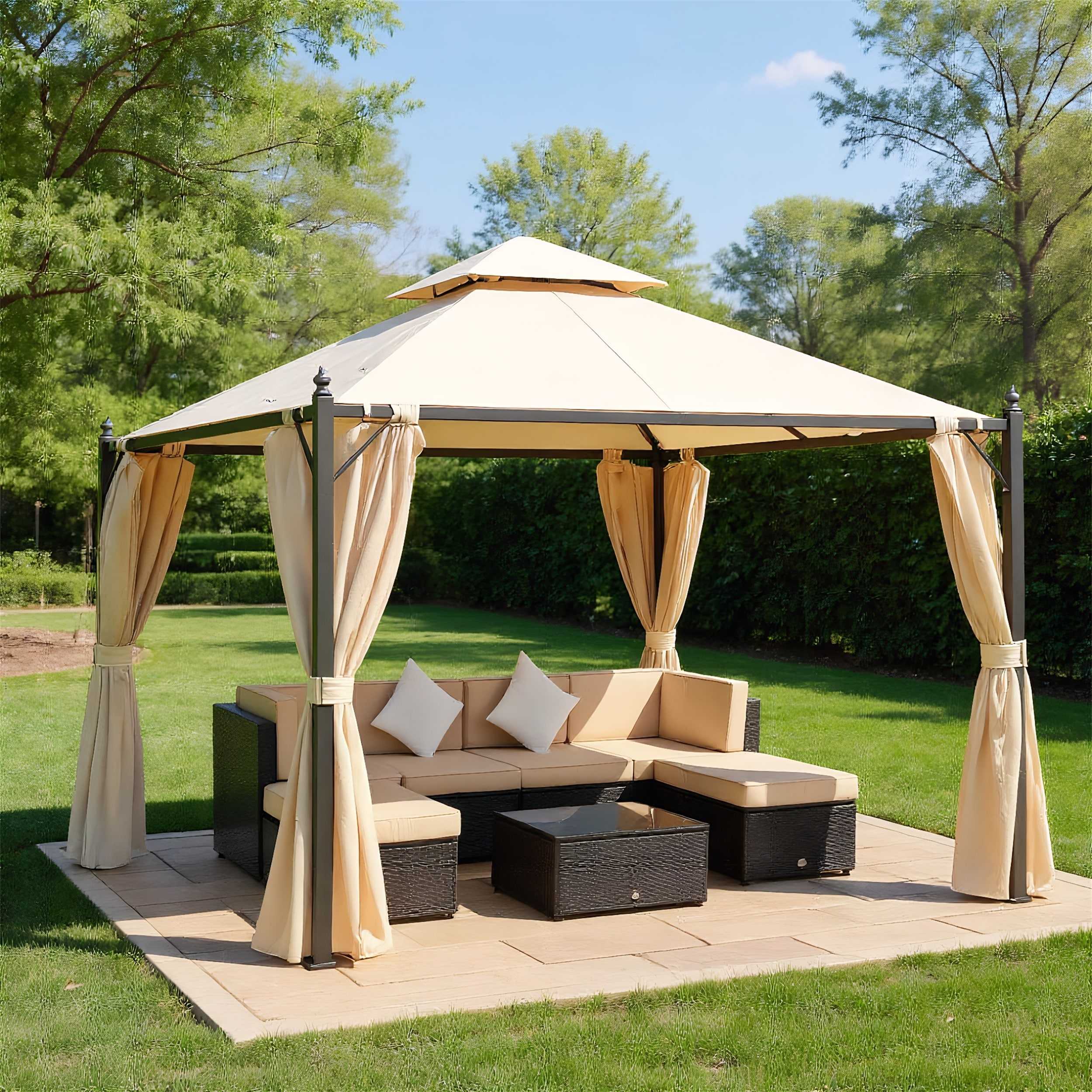 Double Canopy Patio Gazebo w/ Privacy Curtains,10'x10' Outdoor Shelter