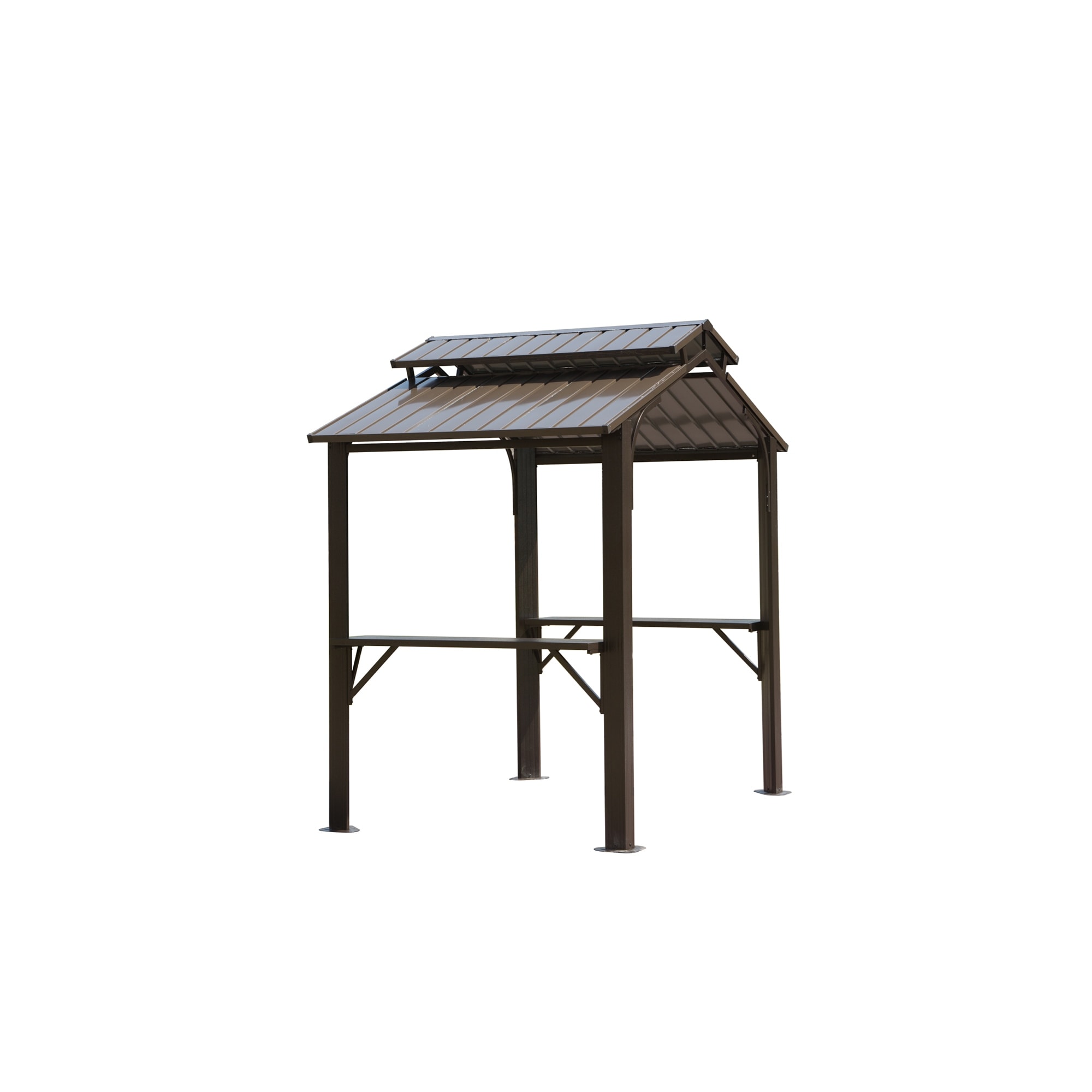 8'x 5' Outdoor Hardtop Grill Gazebo, with Galvanized Steel Double Roof, 2 Side Shelves and Ceiling Hook
