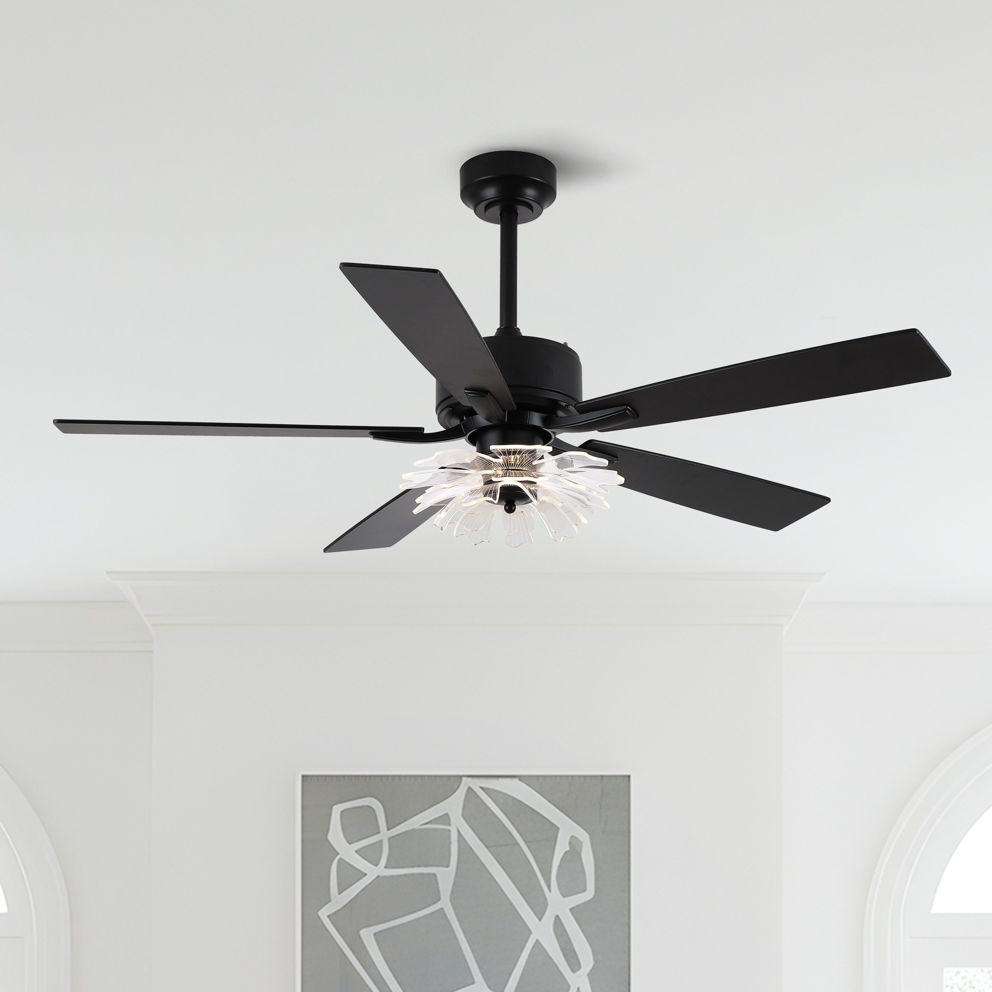 52-inch Industrial Acrylic Matte Black DC Ceiling Fan with Light and Remote