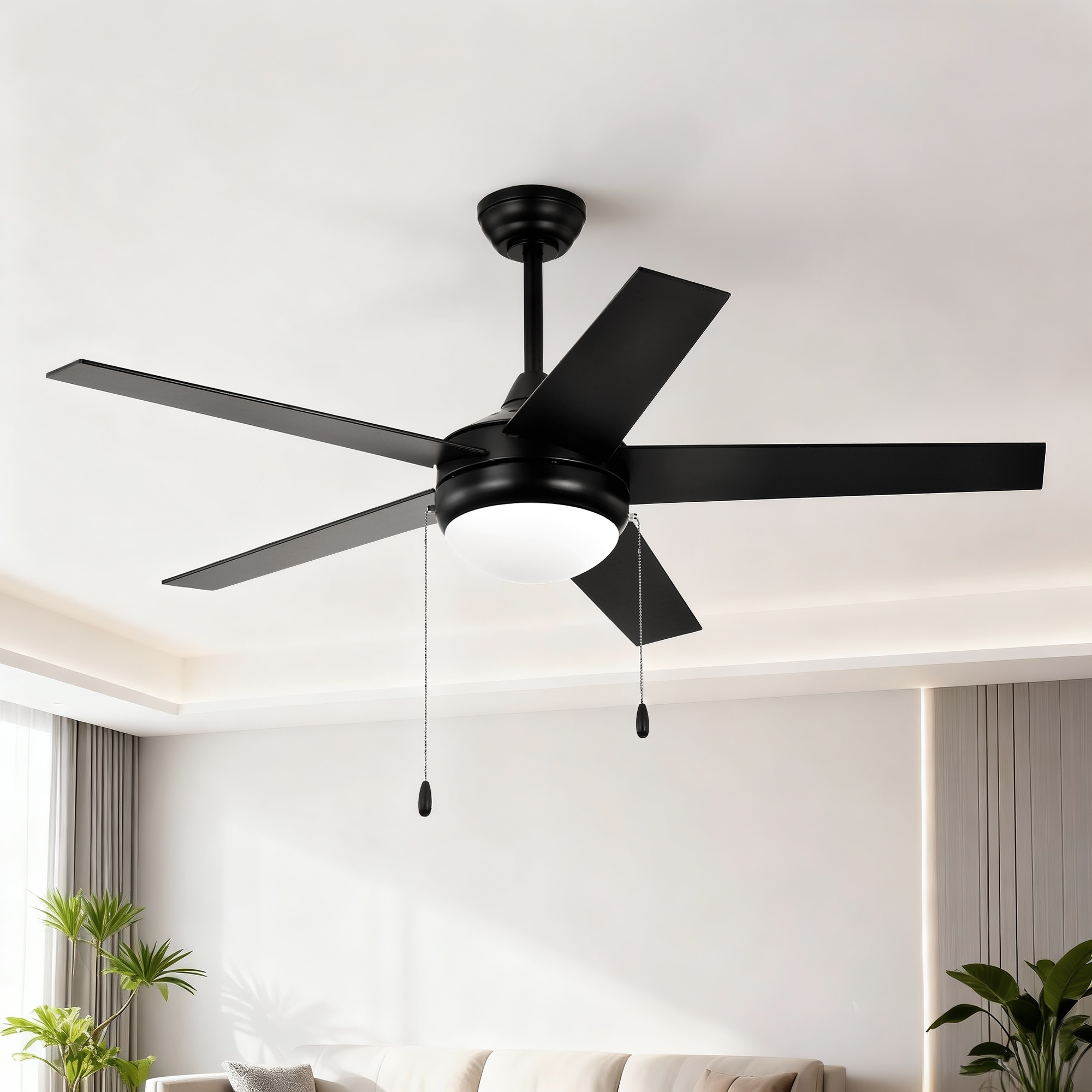 Matte Black/Brushed Nickel 52 in. Integrated LED Indoor 5-Blade Ceiling Fan with Pull Chain