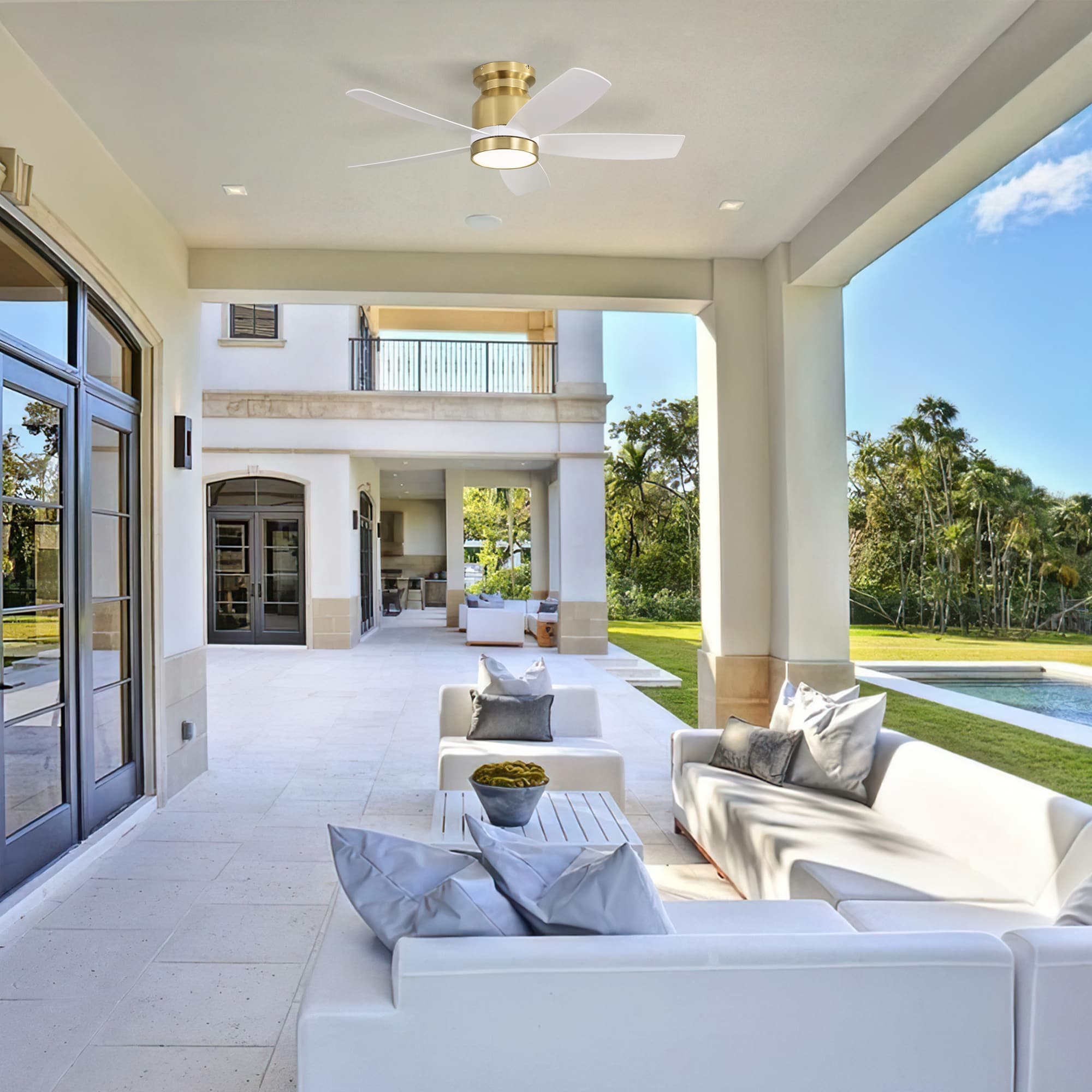 42" Flush Mount Ceiling Fans with LED Light and Remote Control - Gold