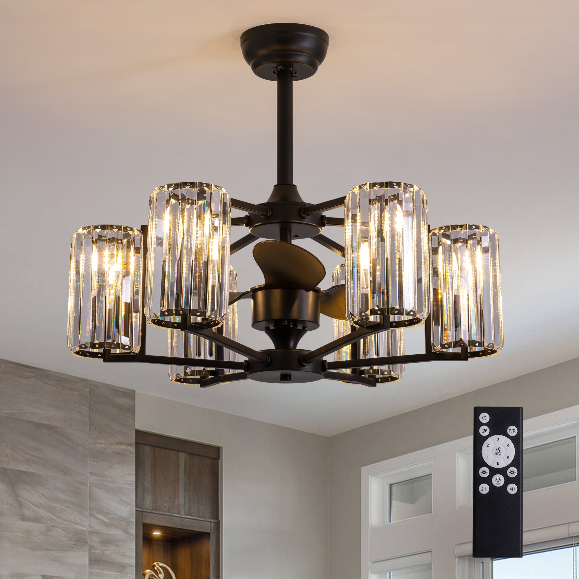 6-Light Crystal Column Ferris Wheel Ceiling Fan Light with Remote - 27 inch-6 Lights