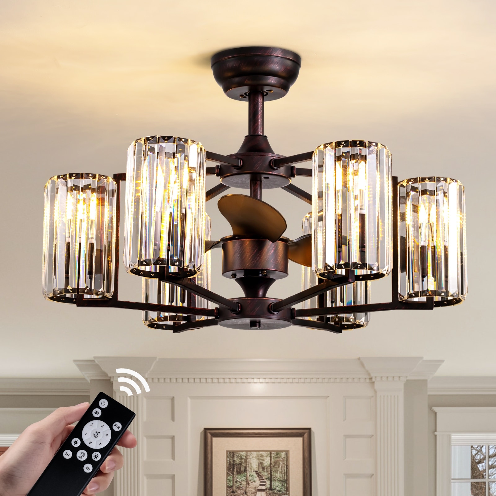 6-Light Crystal Column Ferris Wheel Ceiling Fan Light with Remote - 27 inch-6 Lights