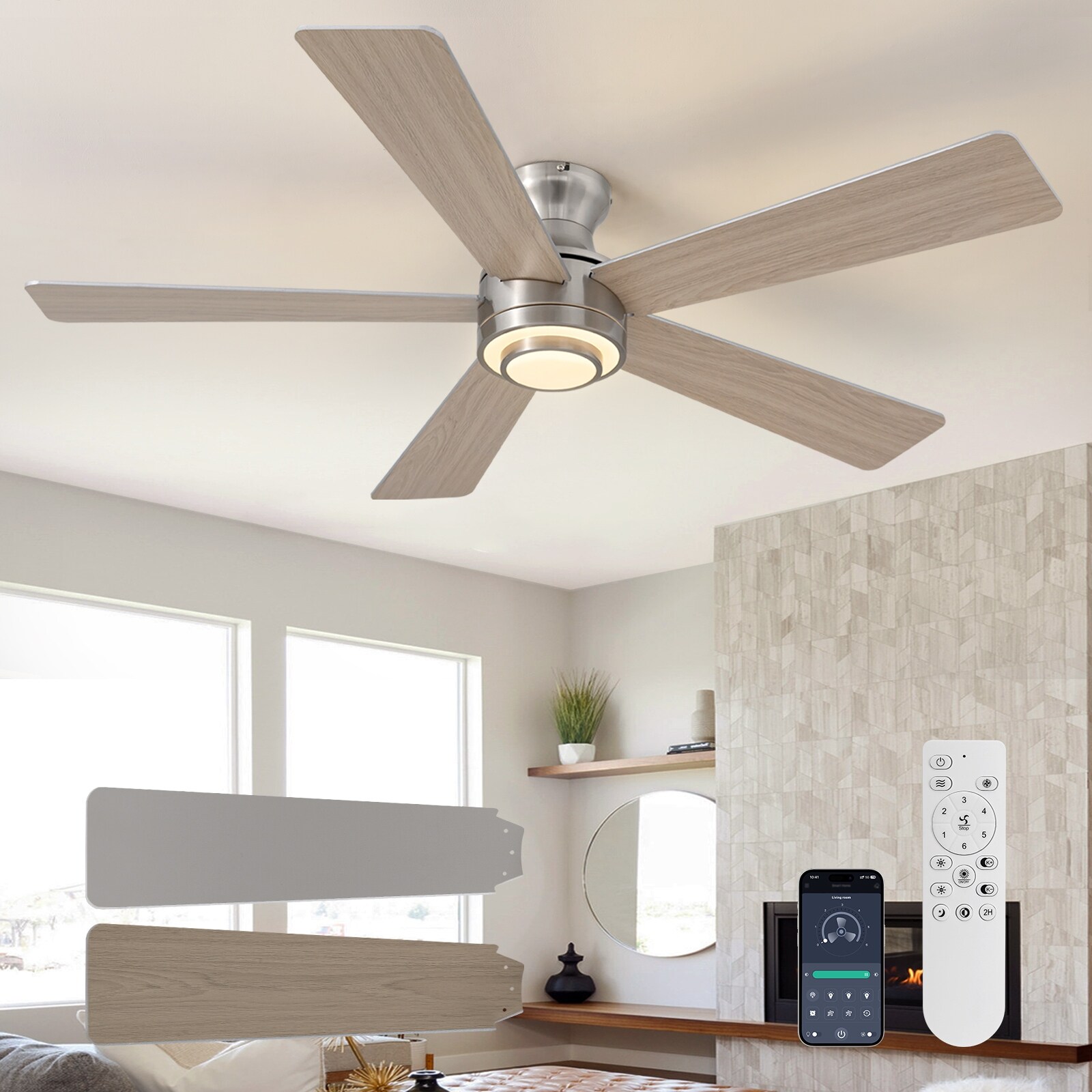 Modern Nickel Dual Flush Mount Ceiling Fans with Dimmable Led and Remote