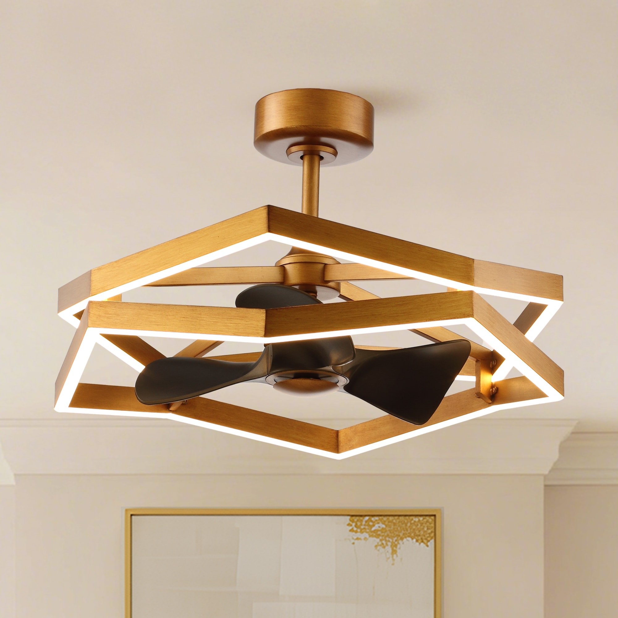 31" Antique Brass Geometry Dimmable Fandelier Caged Ceiling Fan with Light and Remote