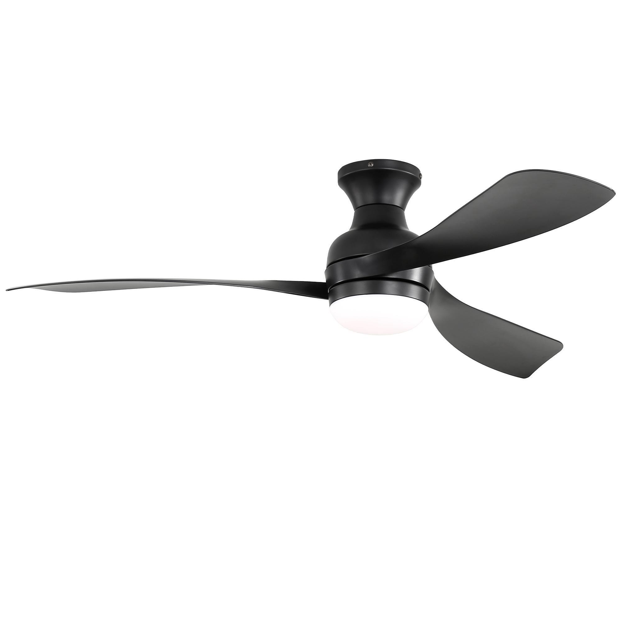 52" Flush Mount Ceiling Fan DC 3 Solid Wood Fan Blade Noiseless Reversible Motor Remote Control with Intergrated LED Light