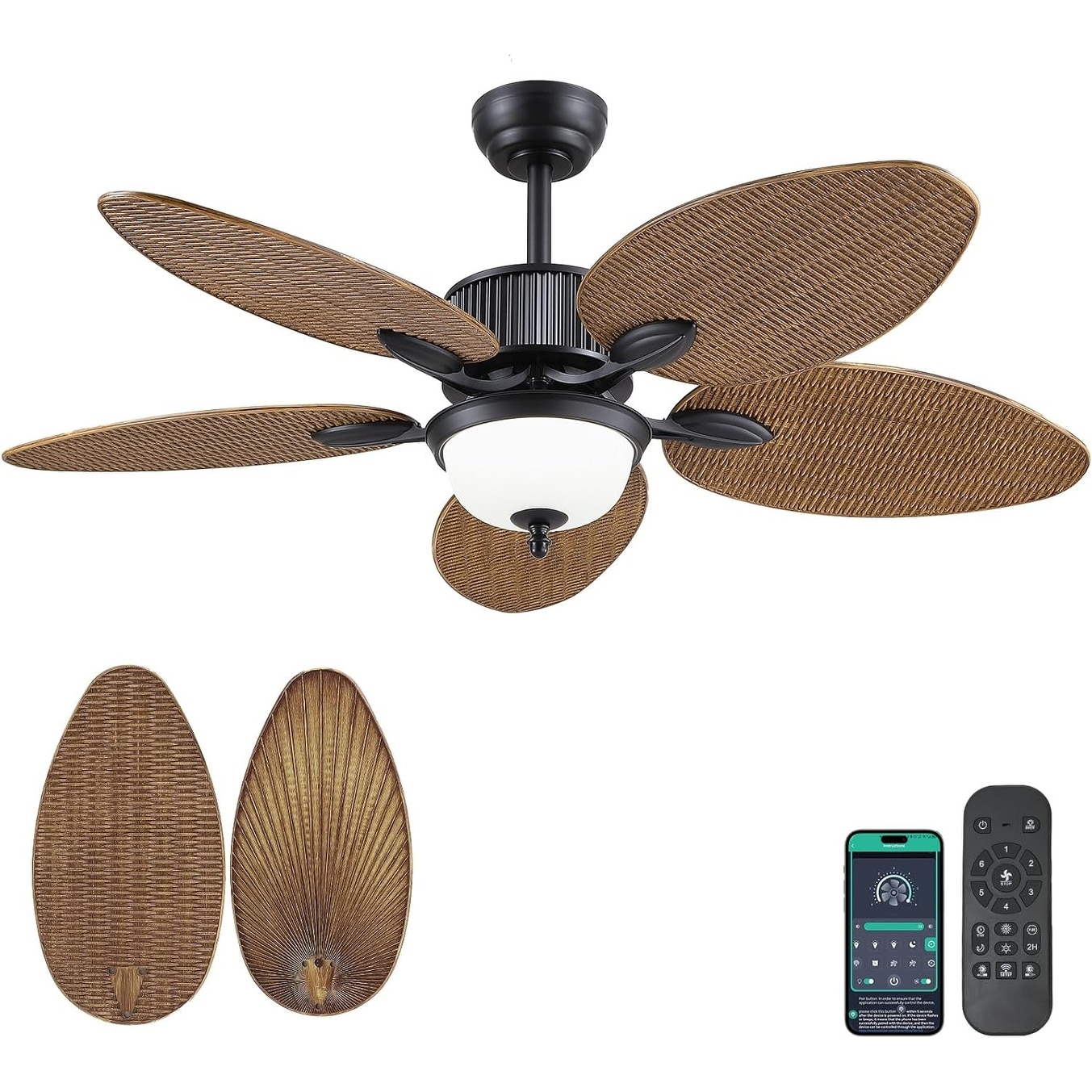 Kviflon 50 Inches Ceiling Fan with Light and Remote Tropical Ceiling Fan with Palm Leaf Blades - 50 Inches
