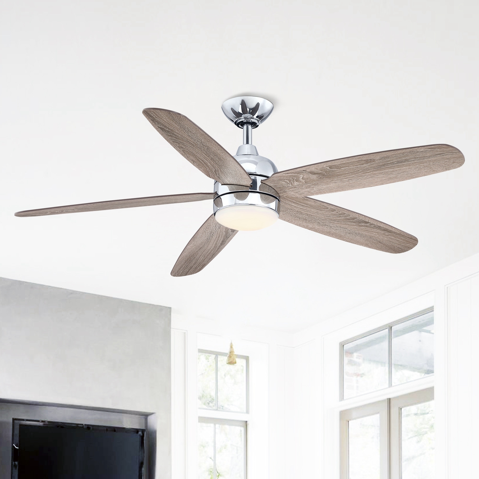 52" Classic Wooden 5-Blade Chrome Reversible Ceiling Fan with Light and Remote - 52 in. D x 52 in. W x 14.6 in. H