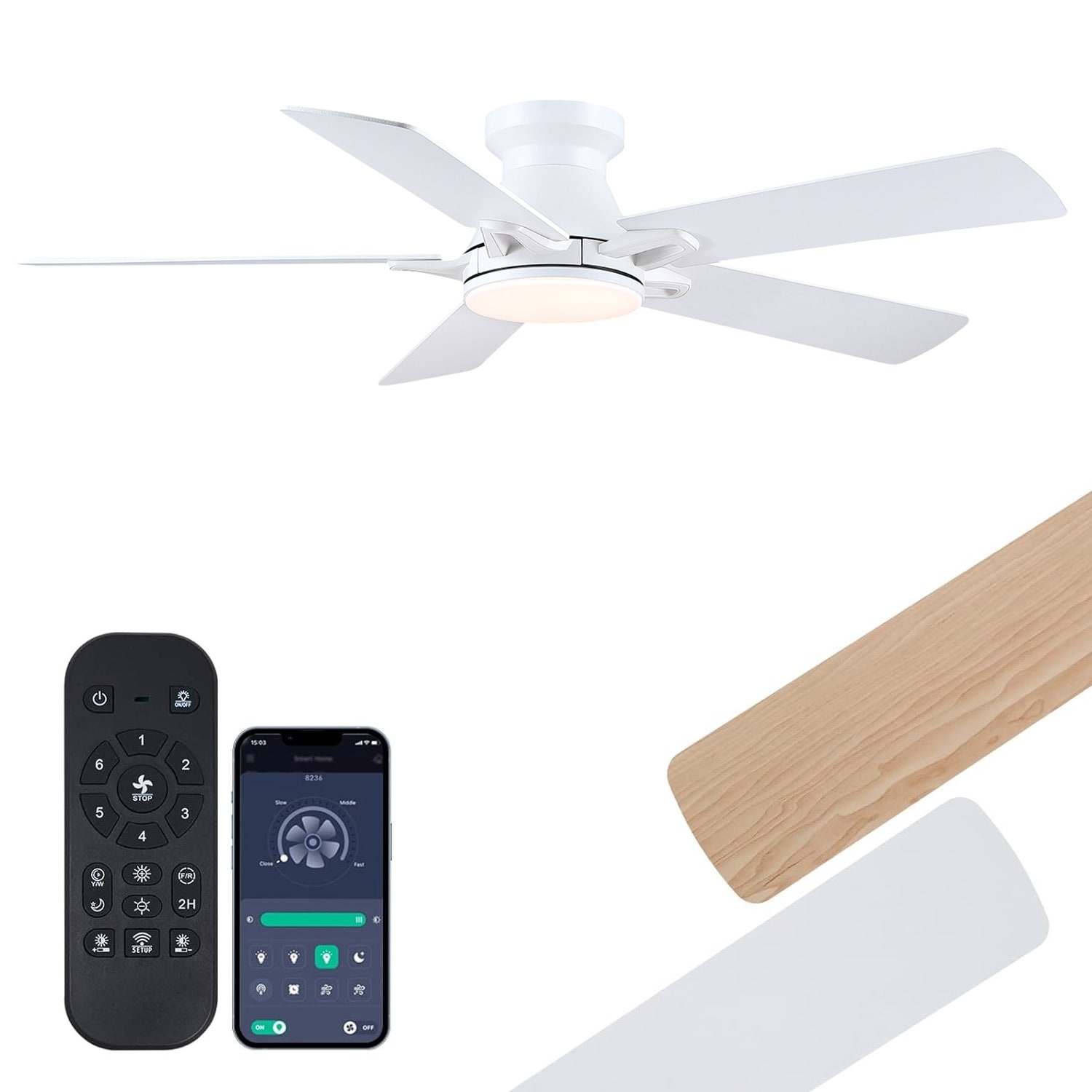 52 Inch Ceiling Fan with Light and Remote,5 Dual Side Blades 3CCT Dimmiable LED for Living Room Bedroom Kitchen