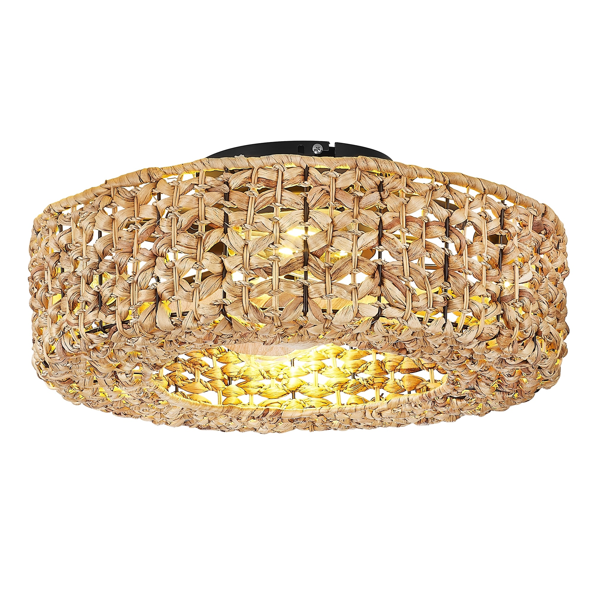 20" Indoor 100-240V Flush Mount Rattan Cage Ceiling Fan with Light - 19.7 Inches