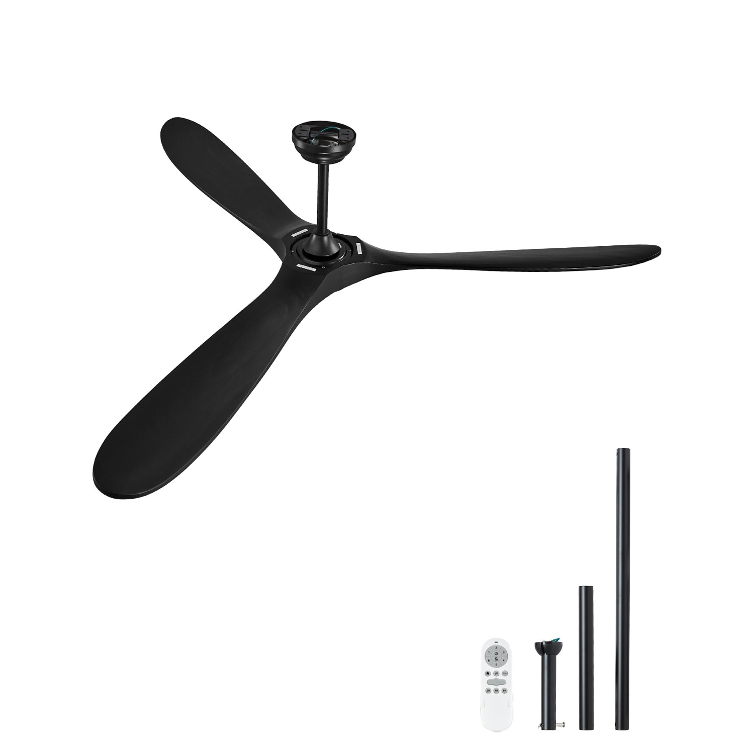 Parrot Uncle 52" Matte Black/ White 3 Blades Indoor Propeller Ceiling Fan with Remote, No Lights