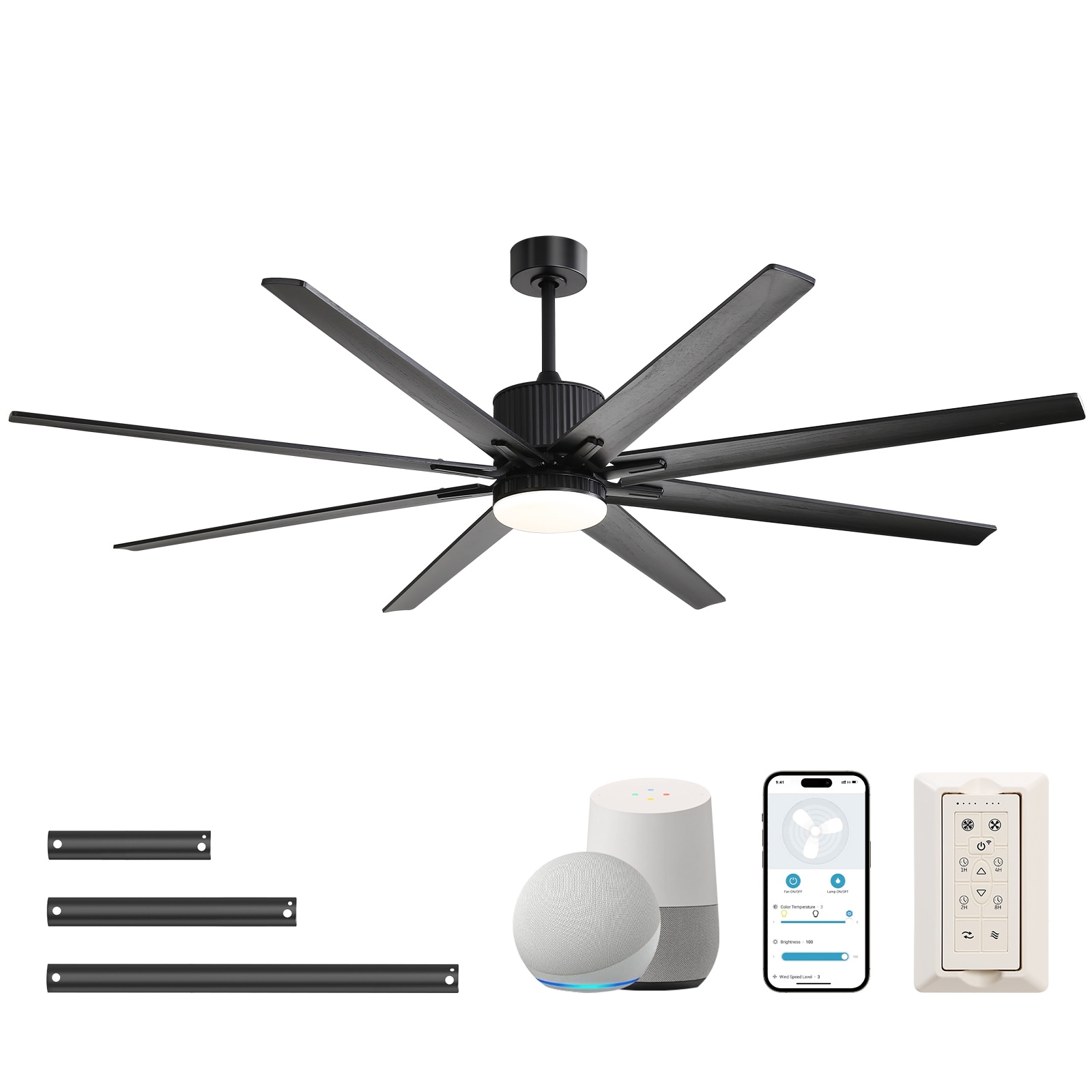 52"/66"/72"/76 Inch Modern Ceiling Fan with Dimmable LED Light ,Remote&APP Control,8 Blades for Large Living Room,Porch