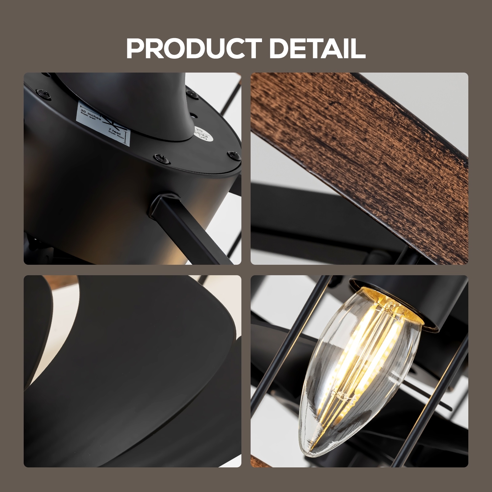 20'' Industrial Caged Ceiling Fan With Lights and Remote Control