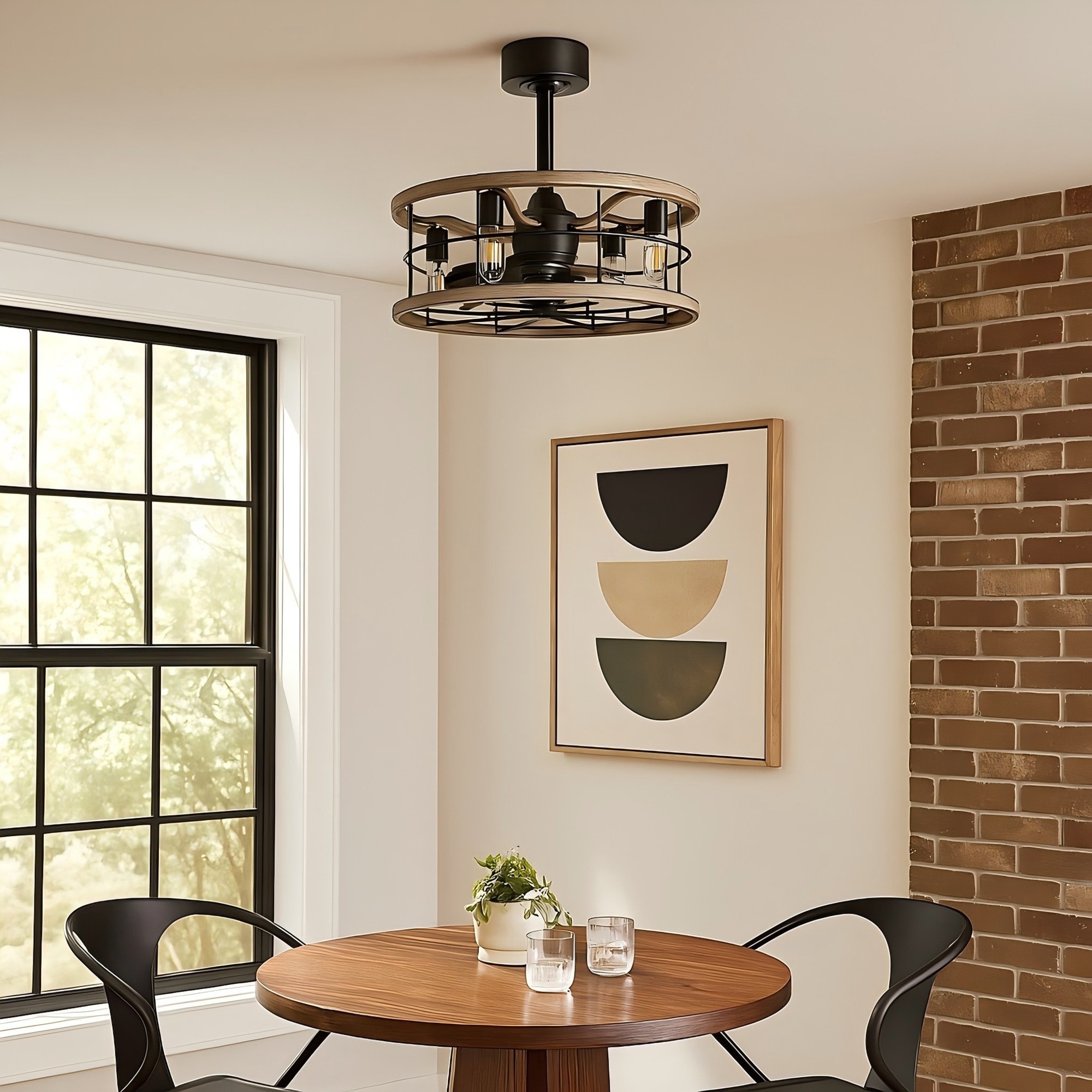 GetLedel 18" Modern Farmhouse Caged Ceiling Fan with Remote Control and Light Kit