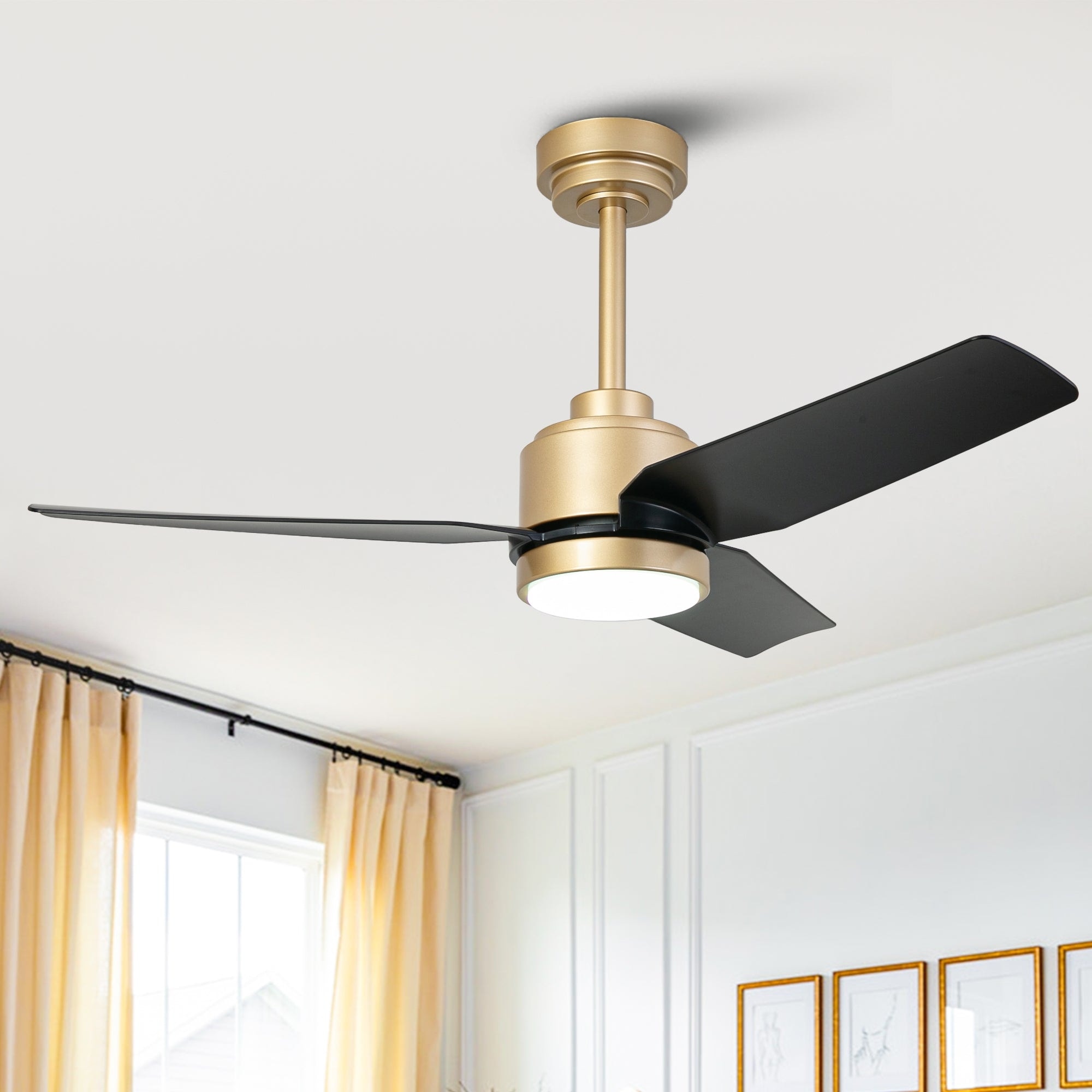 42" 3-Blade Modern Black & Gold Ceiling Fan with LED Light