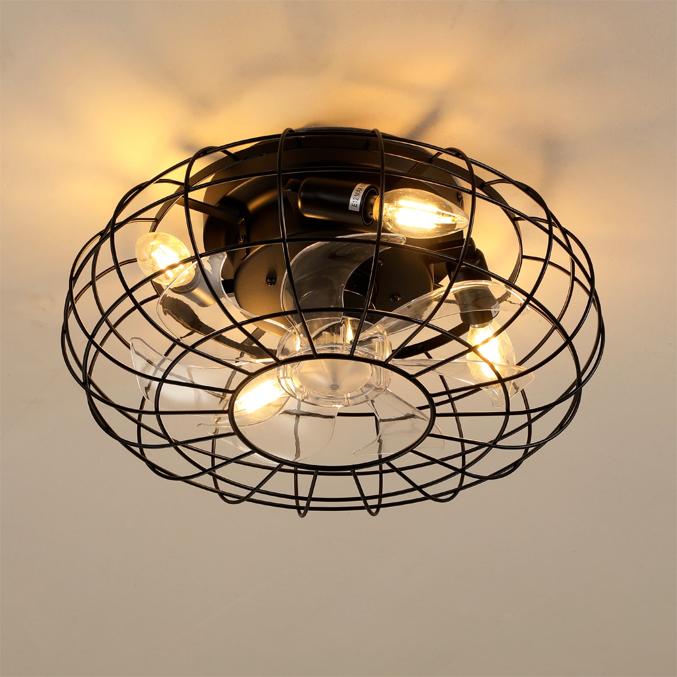20 Inch Indoor White and Gold Low Profile Cage Ceiling Fan with Light - 20 Inches