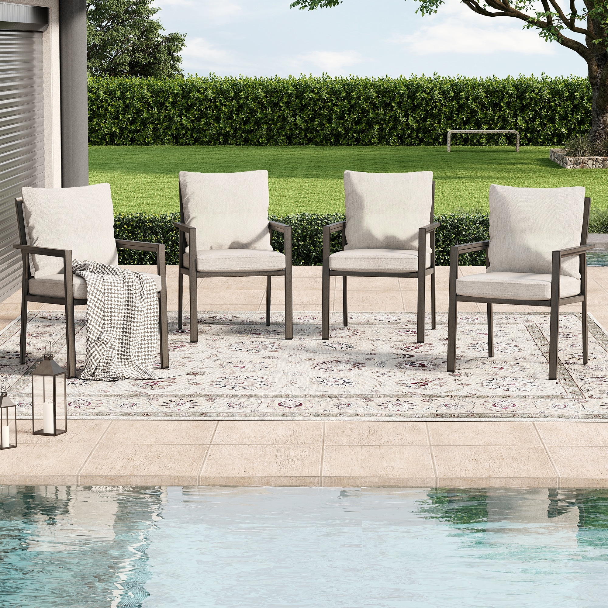 Quietude 4-Piece Aluminum Patio Dining Chairs with Light Gray Cushions