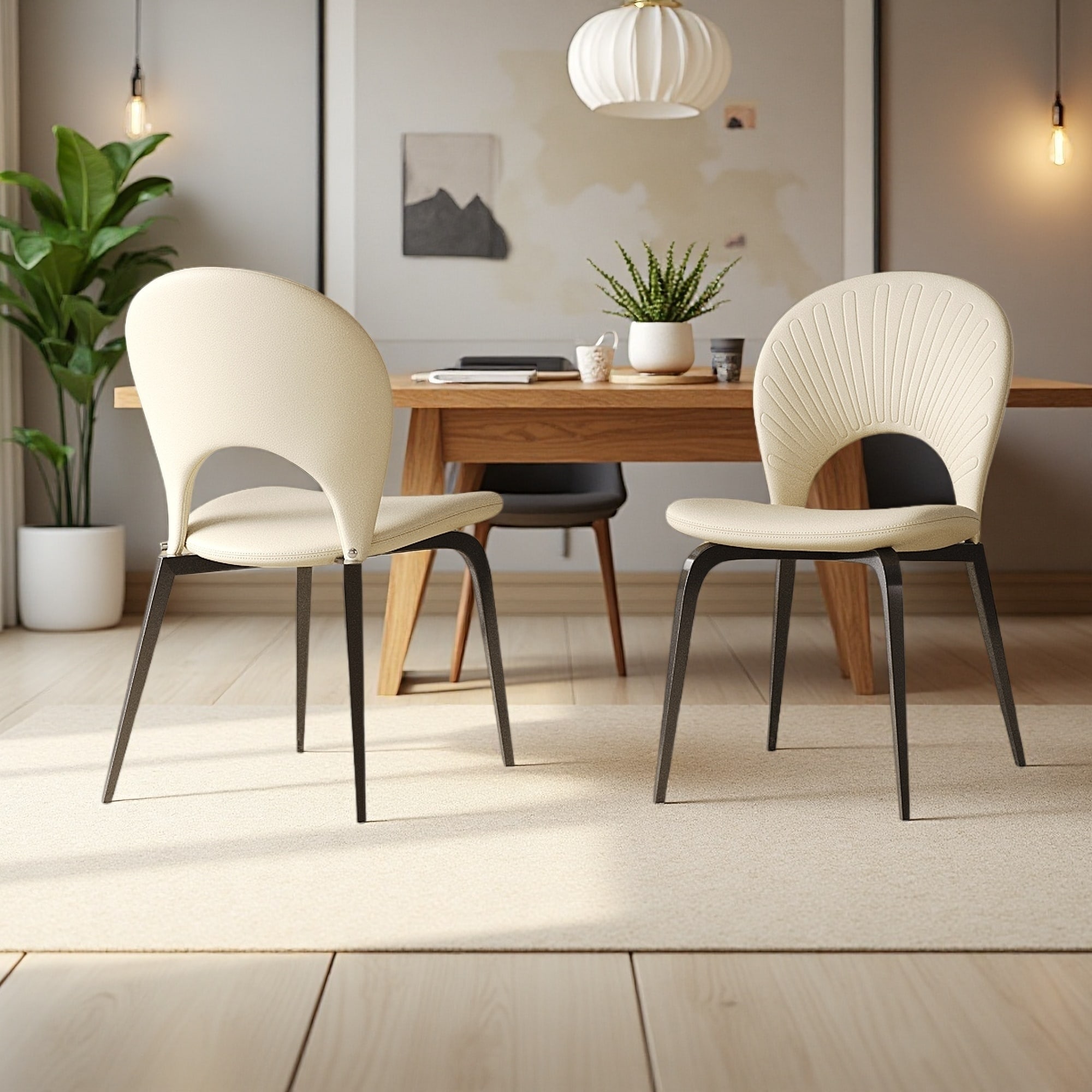 33"H Set of 2 Mid-Height PU Leather Chairs with Curved Backrest & Metal Legs Modern Ergonomic Dining Chairs for Living Room