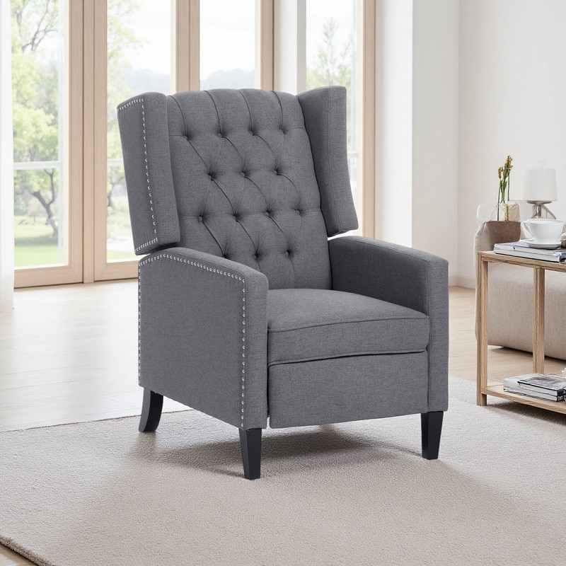 PU Manual Wingback Recliner Chair with 3-Position Adjustment & Nailhead Trim