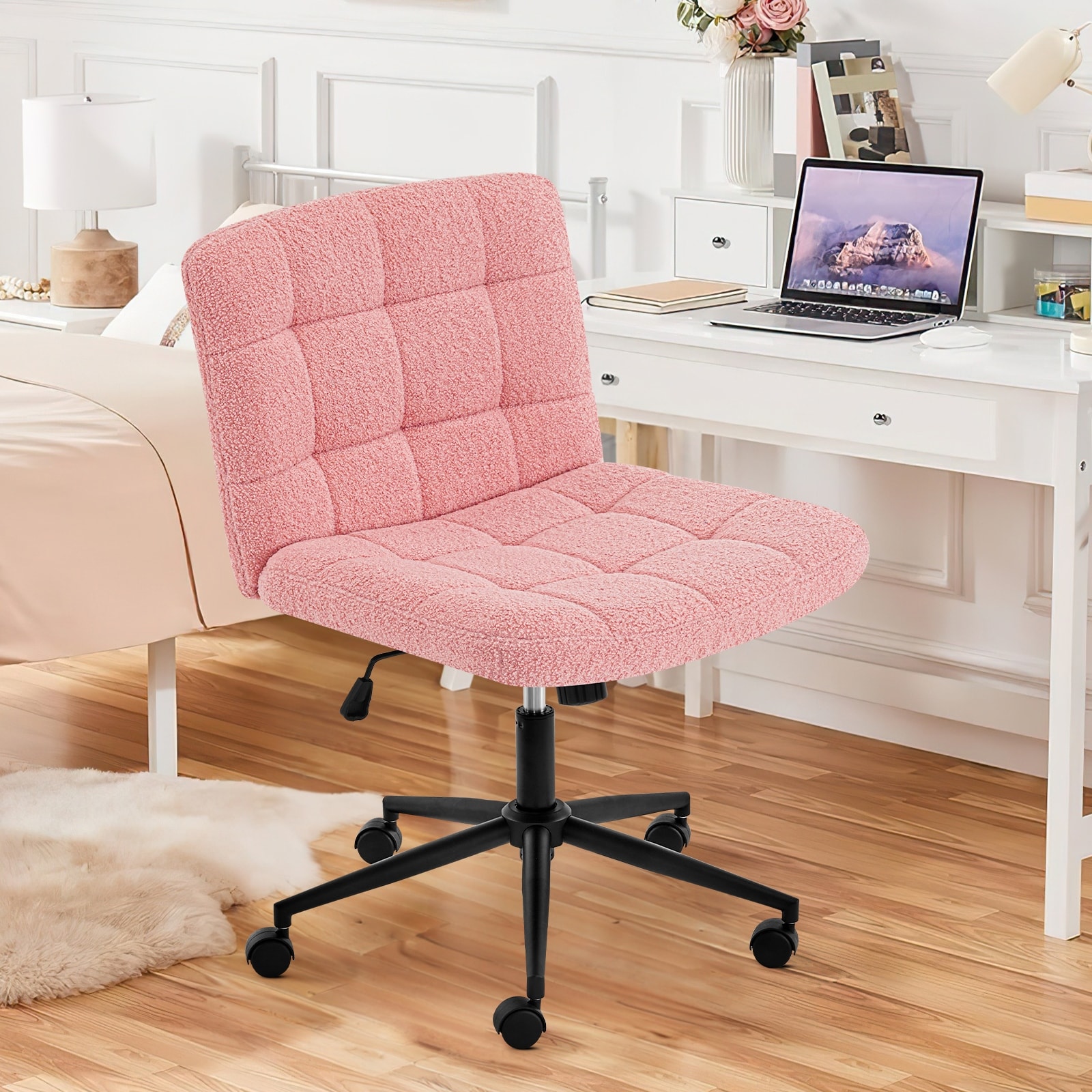 Cross Legged Office Chair Armless Office Desk Chair w/ Imitation Lamb