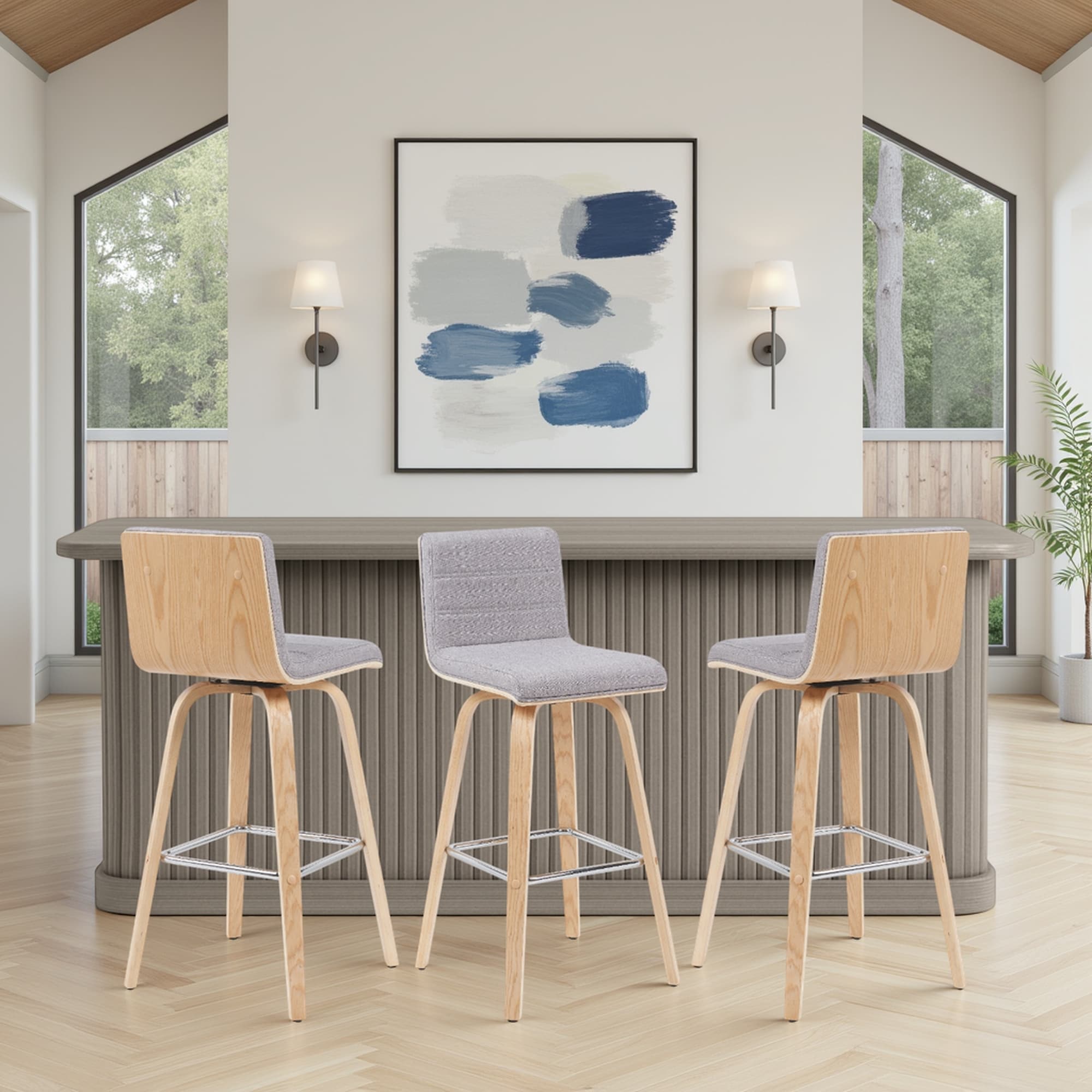 Skara Swivel Bar Stool, Upholstered Bar Height Chair with Bentwood Frame