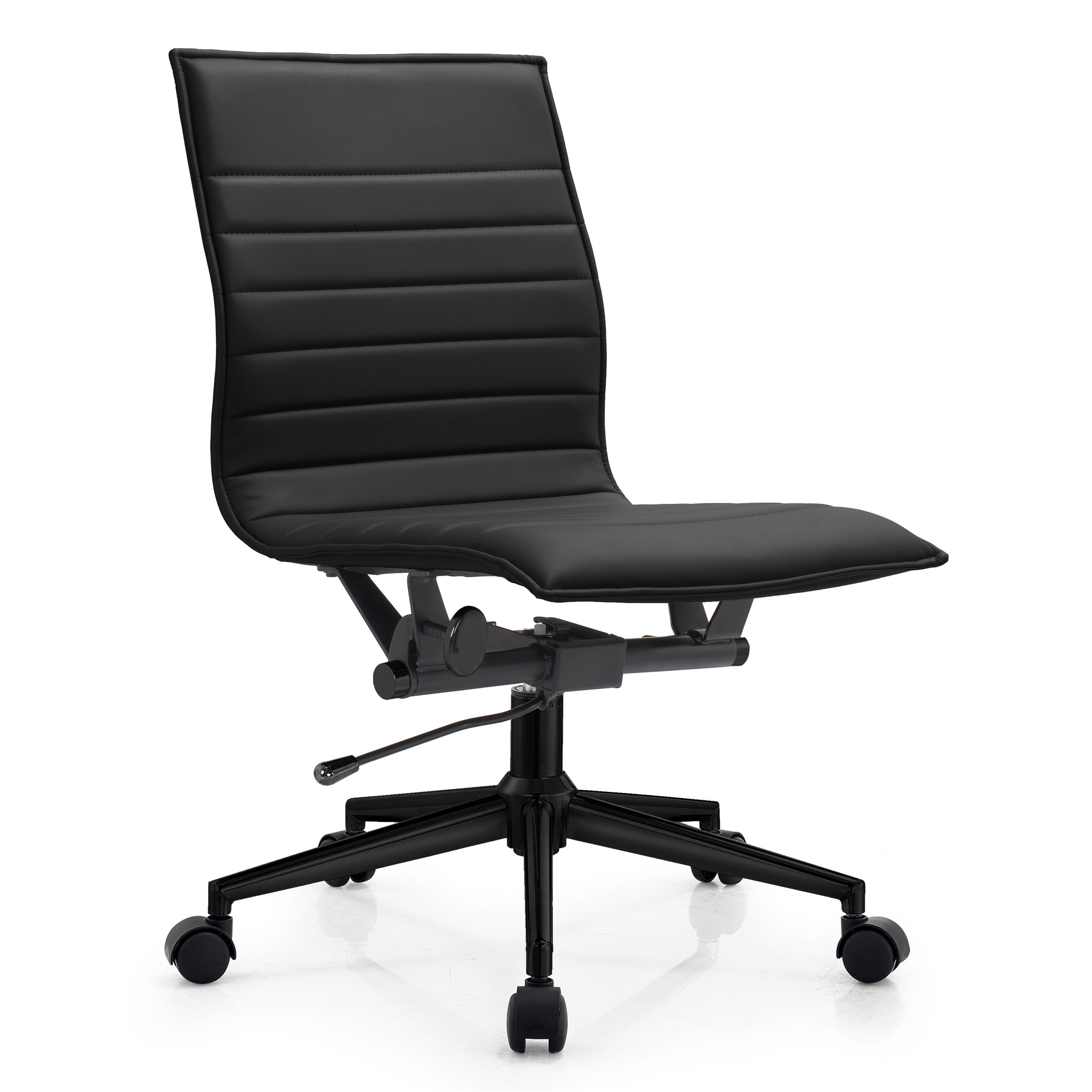 Modern Office Desk Chair | Upholstered PU Leather Ribbed Armless Mid Back with Metal Frame | Adjustable Height, Tilt Lock