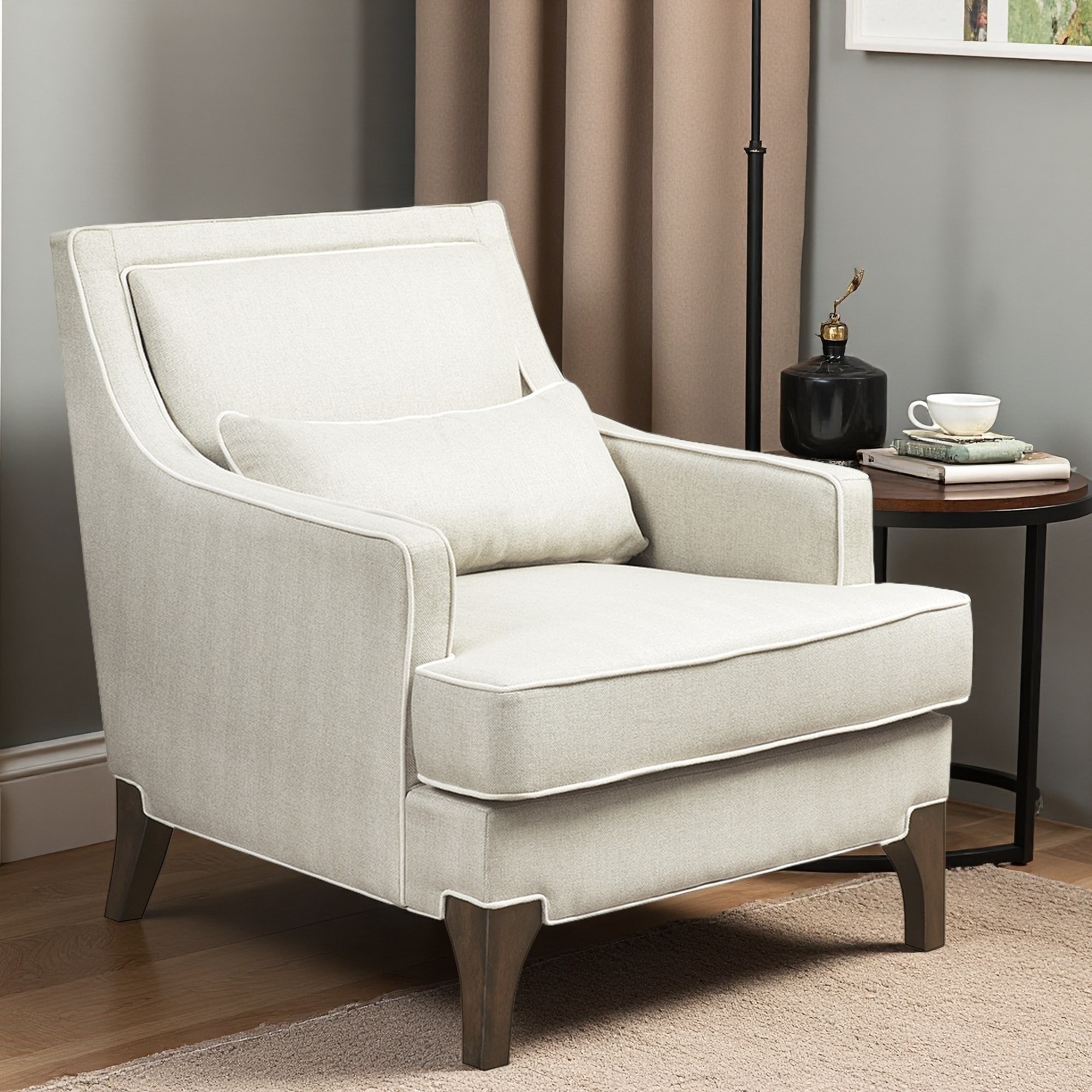 33"H Upholstered Arm Chair with Removable Cushion & Solid Wood Legs