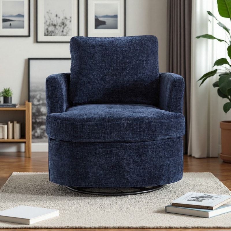GDFStudio - Evarist Chenille 360-Degree Swivel Accent Chair with Cushion Back