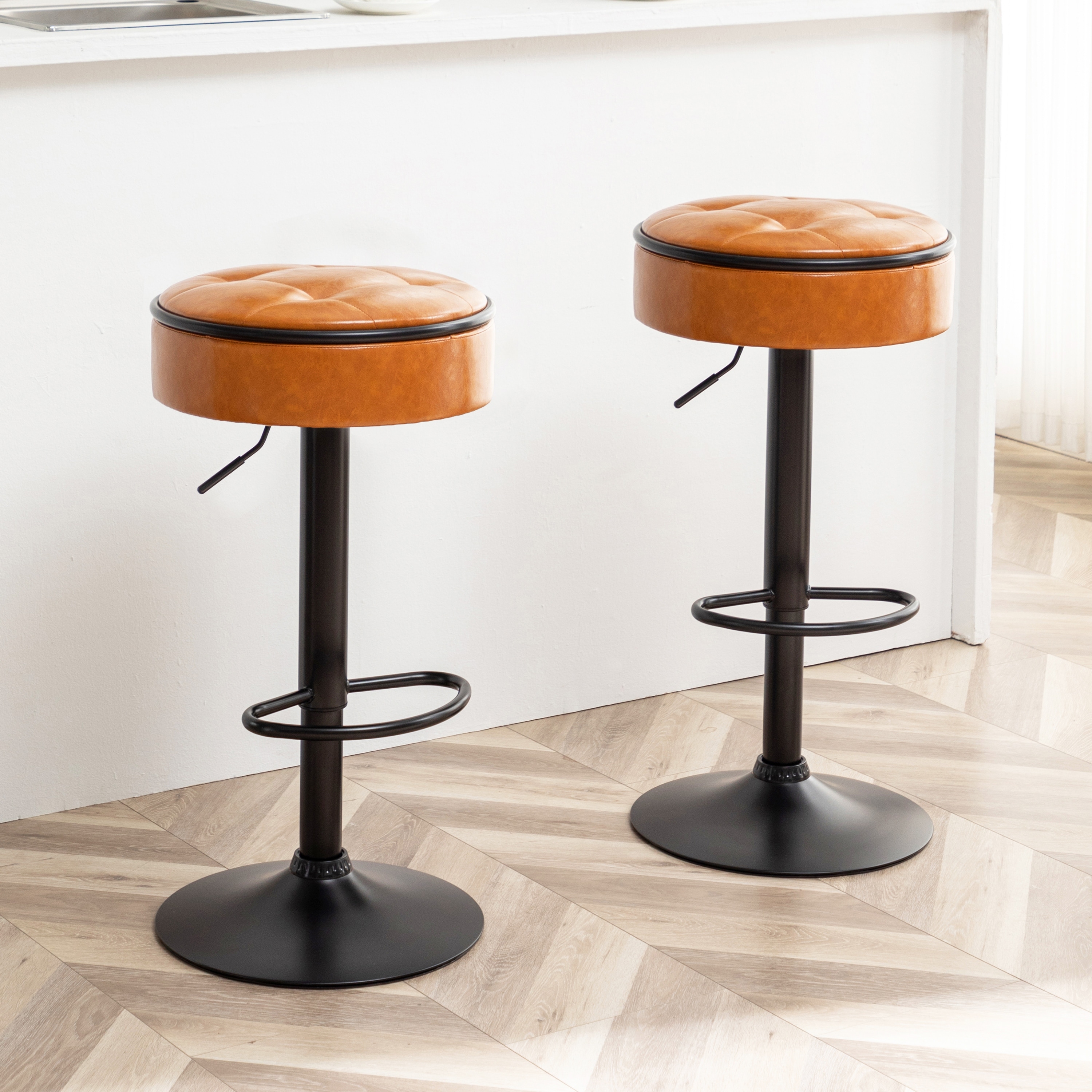 360°Counter Height Adjustable Round Storage Bar Stool, Set of 2