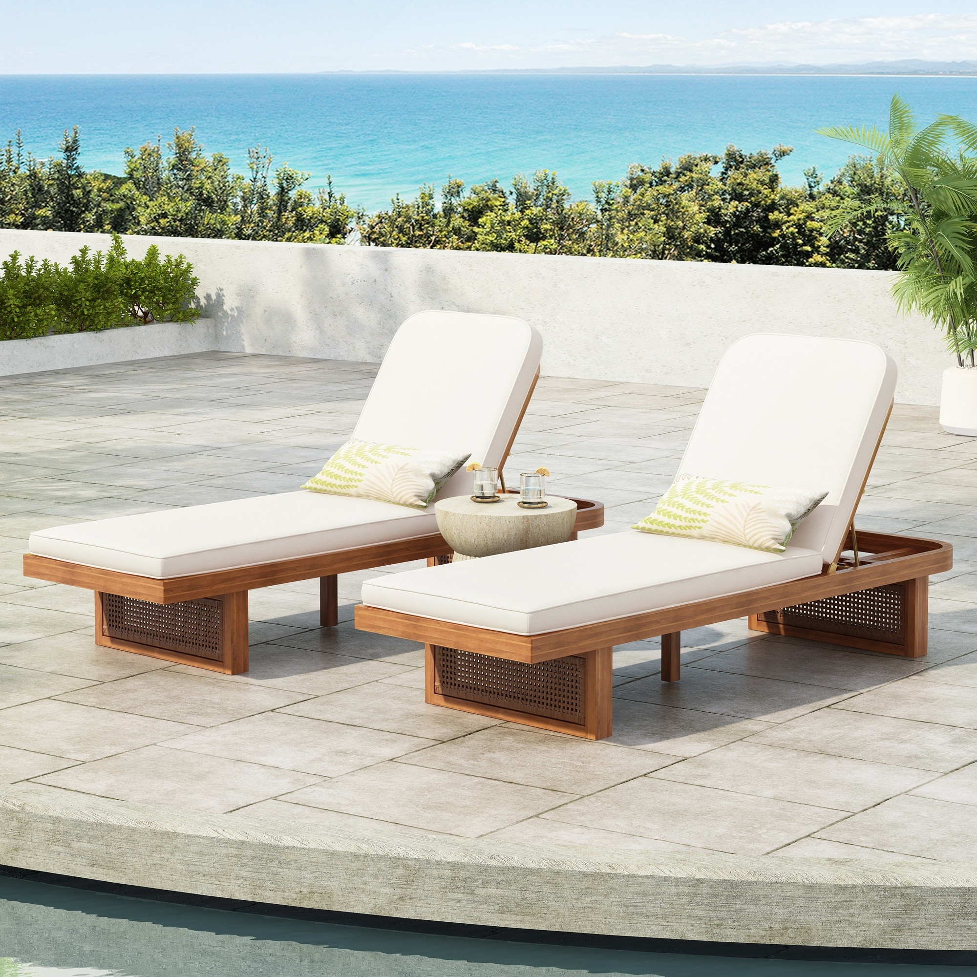 3-Piece Chaise Lounge Set Adjustable Patio Chaise Lounge with Side Table
