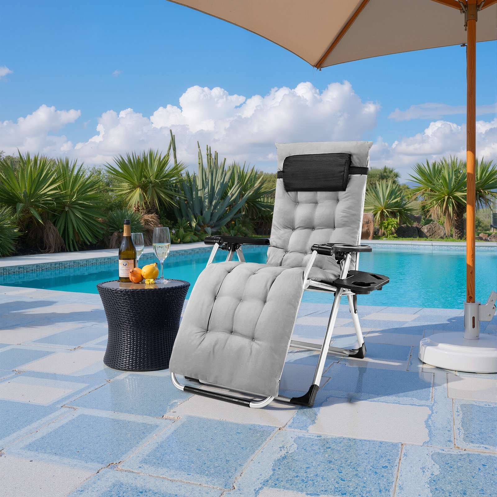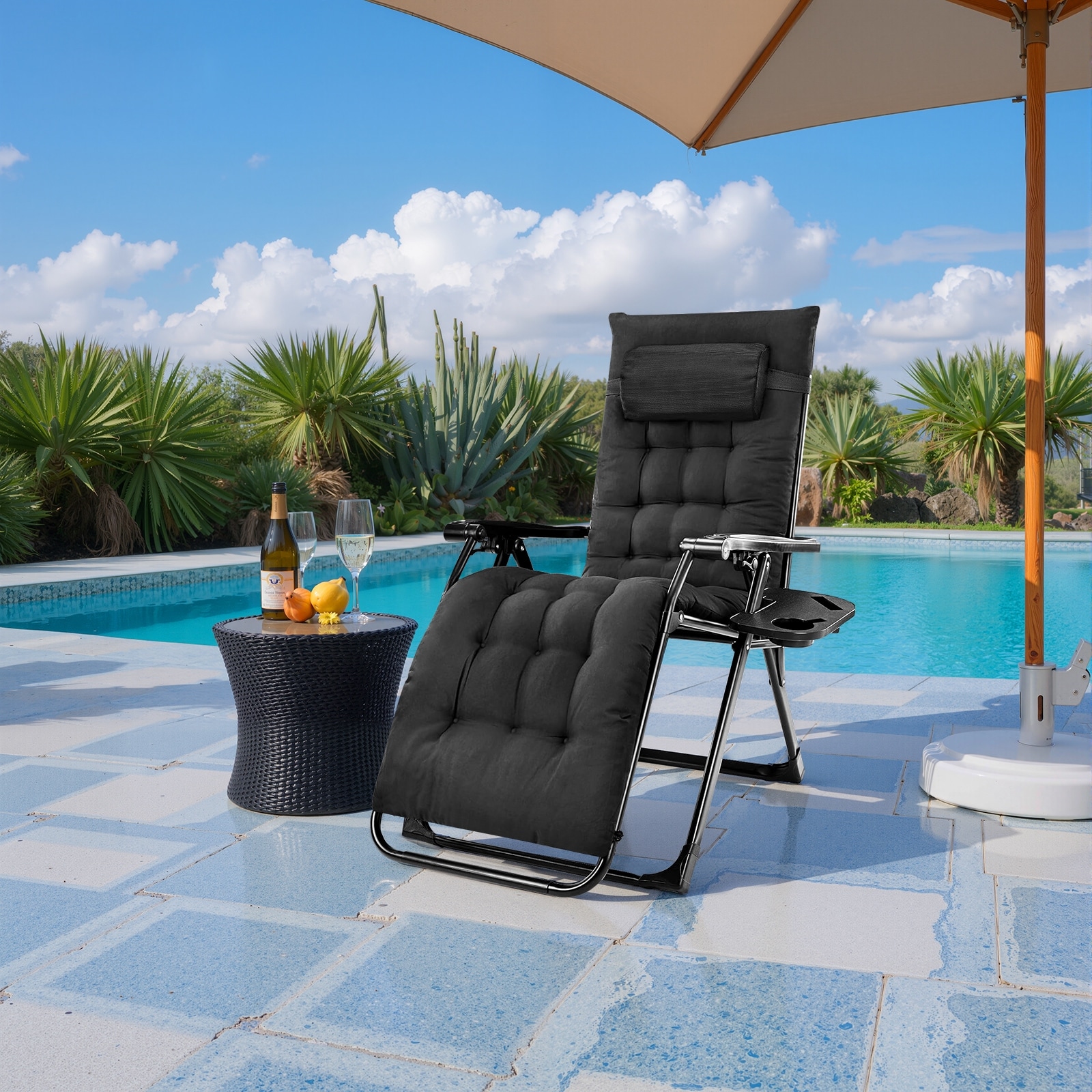 Zero Gravity Portable Lounge Chair with Removable Cushion & Cup Holder Trays for Garden, Camping (1-Pack)