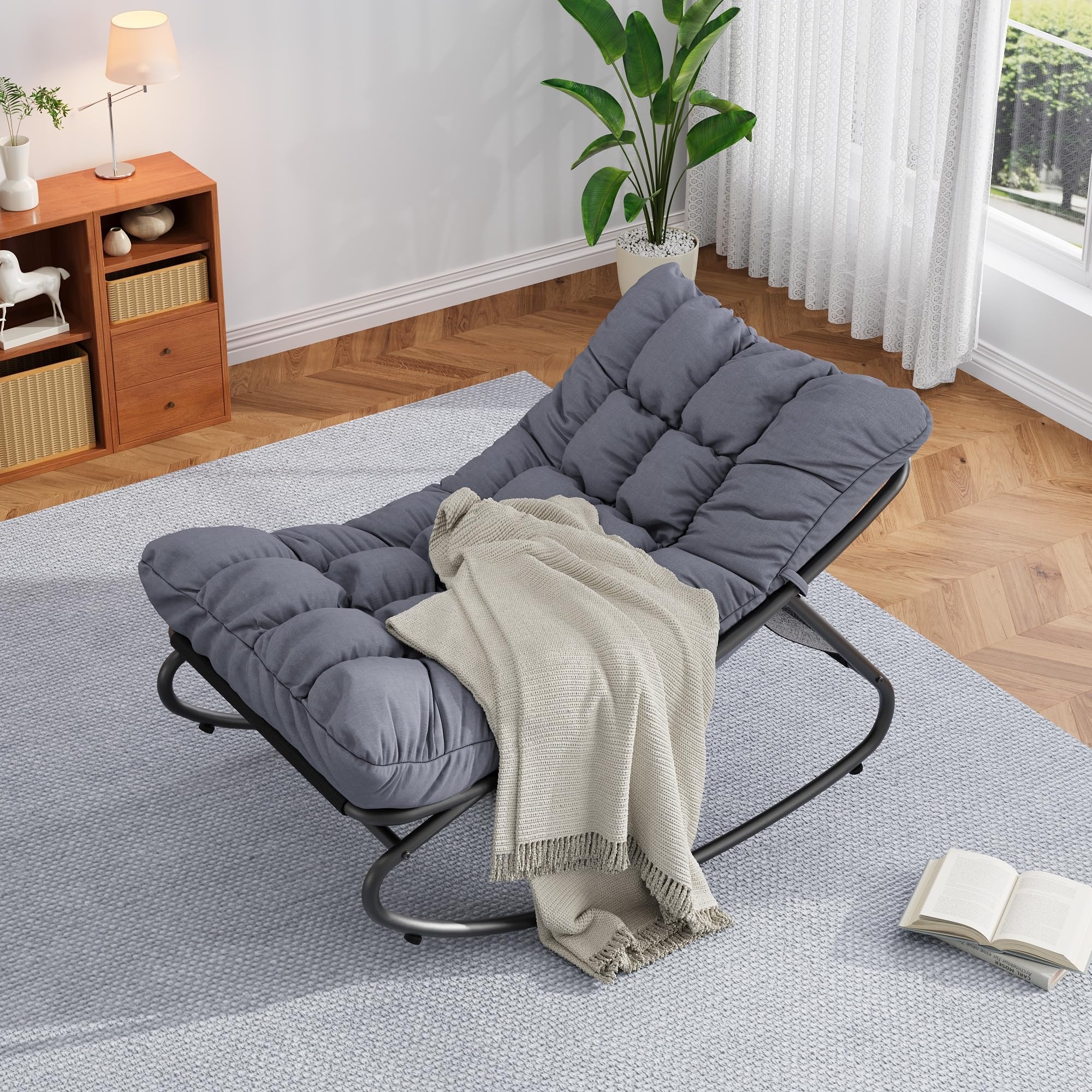 VredHom Outdoor Rocker Chaise Lounge Chair with Pillow