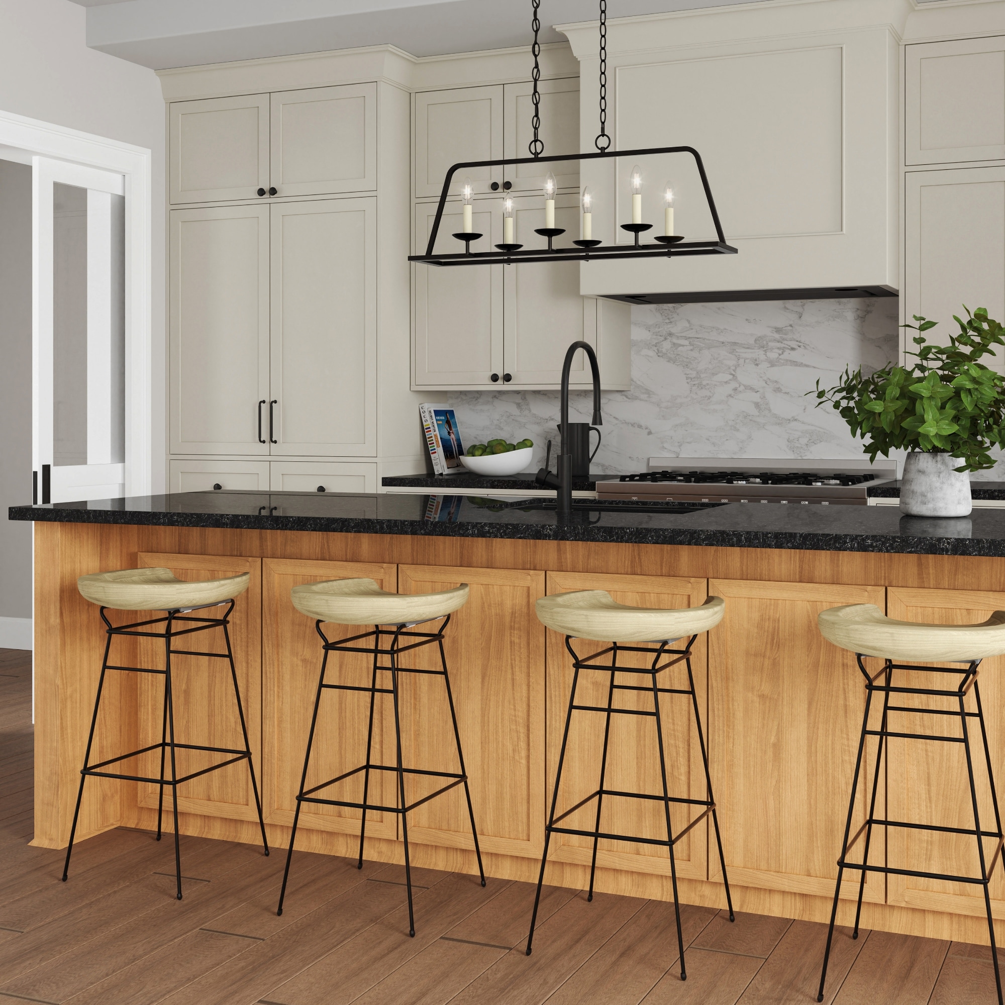 6-Light Lantern-Style Chandelier with Candles - 34" - Bronze Finish