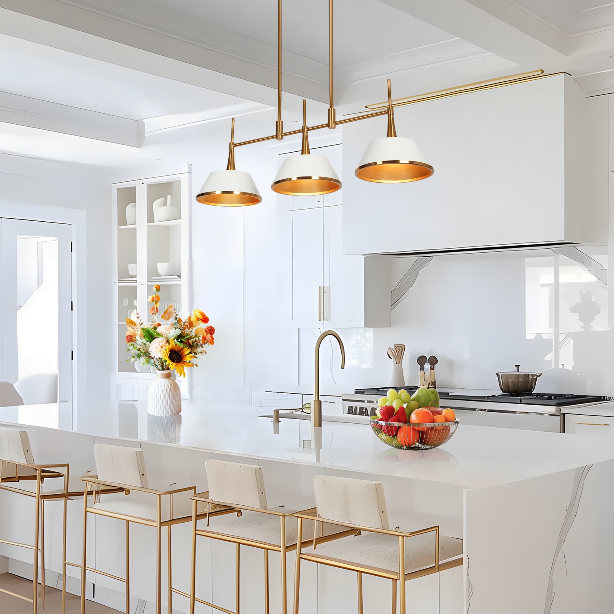 Nisa Modern Gold 3-Light Chandelier Linear Cone Metal Kitchen Island Light - 34.5'' L x 9'' W x 12'' H