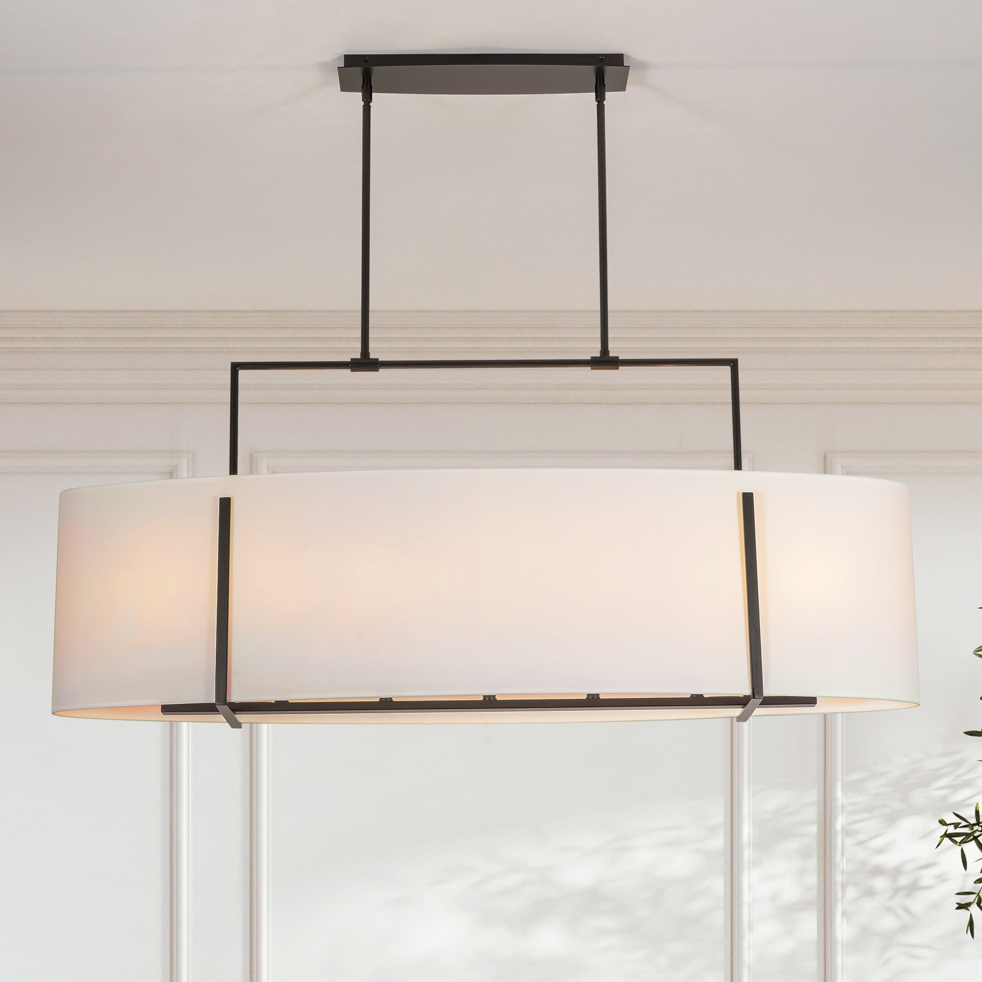 Rennnsan 7-Light Farmhouse Black Oval Drum Fabric Chandelier, Large Dining Room Pendant Light