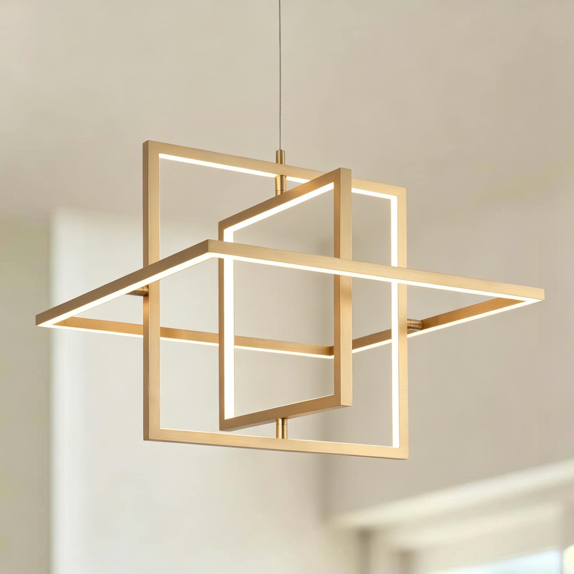 Modern 1-Light Gold Integrated LED Chandelier Square Geometric Pendant Lights for Dining Room
