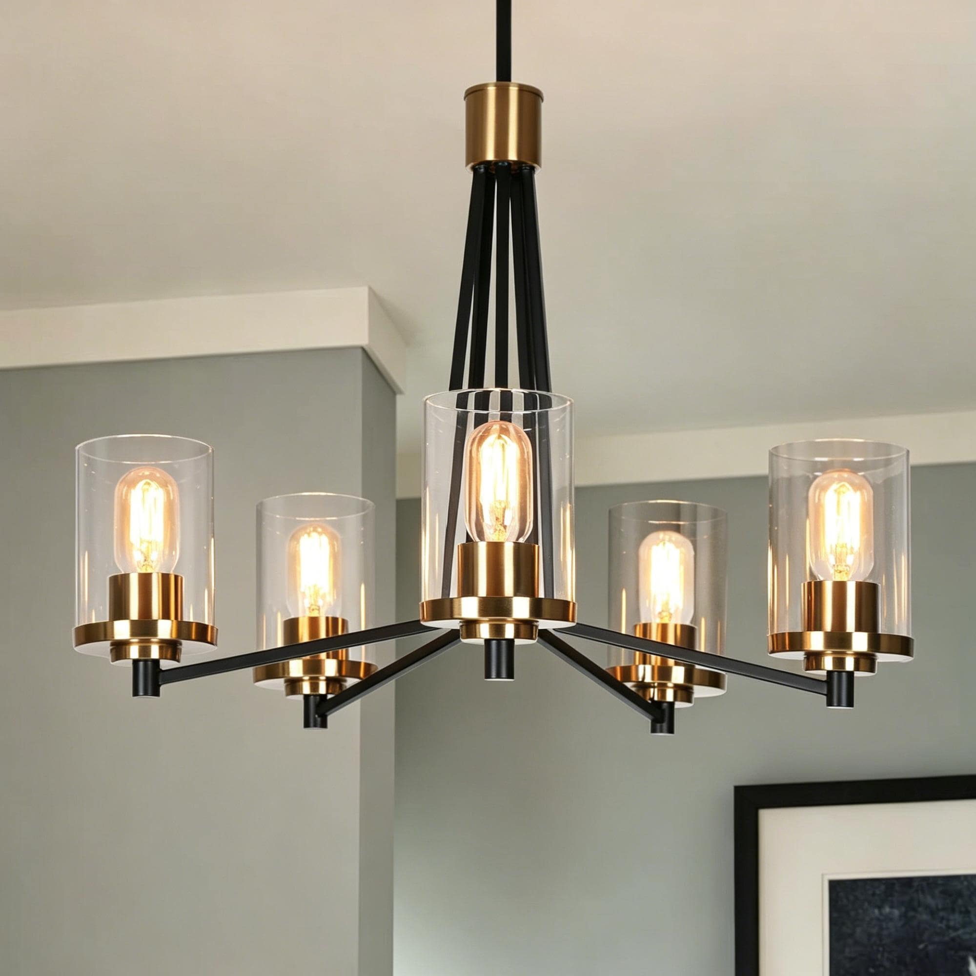 Modern Glam 5-Light Black Gold Chandelier Dining Room Chandelier with Cylinder Glass - 25 " D