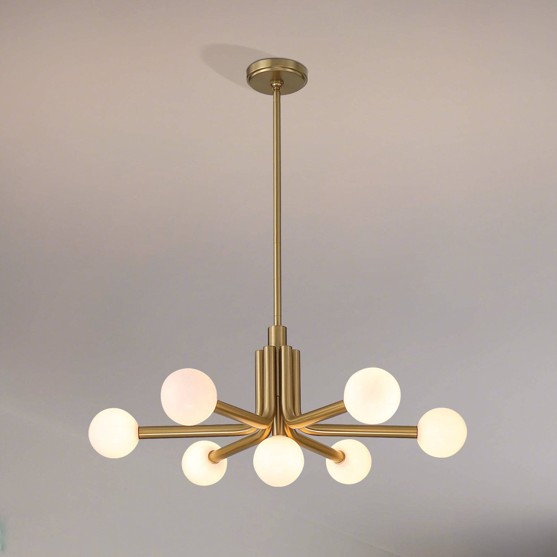 Stockholm 29-inch 7-light Champagne Gold Chandelier with Opal Glass Shades - L: 29" x W: 29" x H: 13.5" x M-H: 69.75"