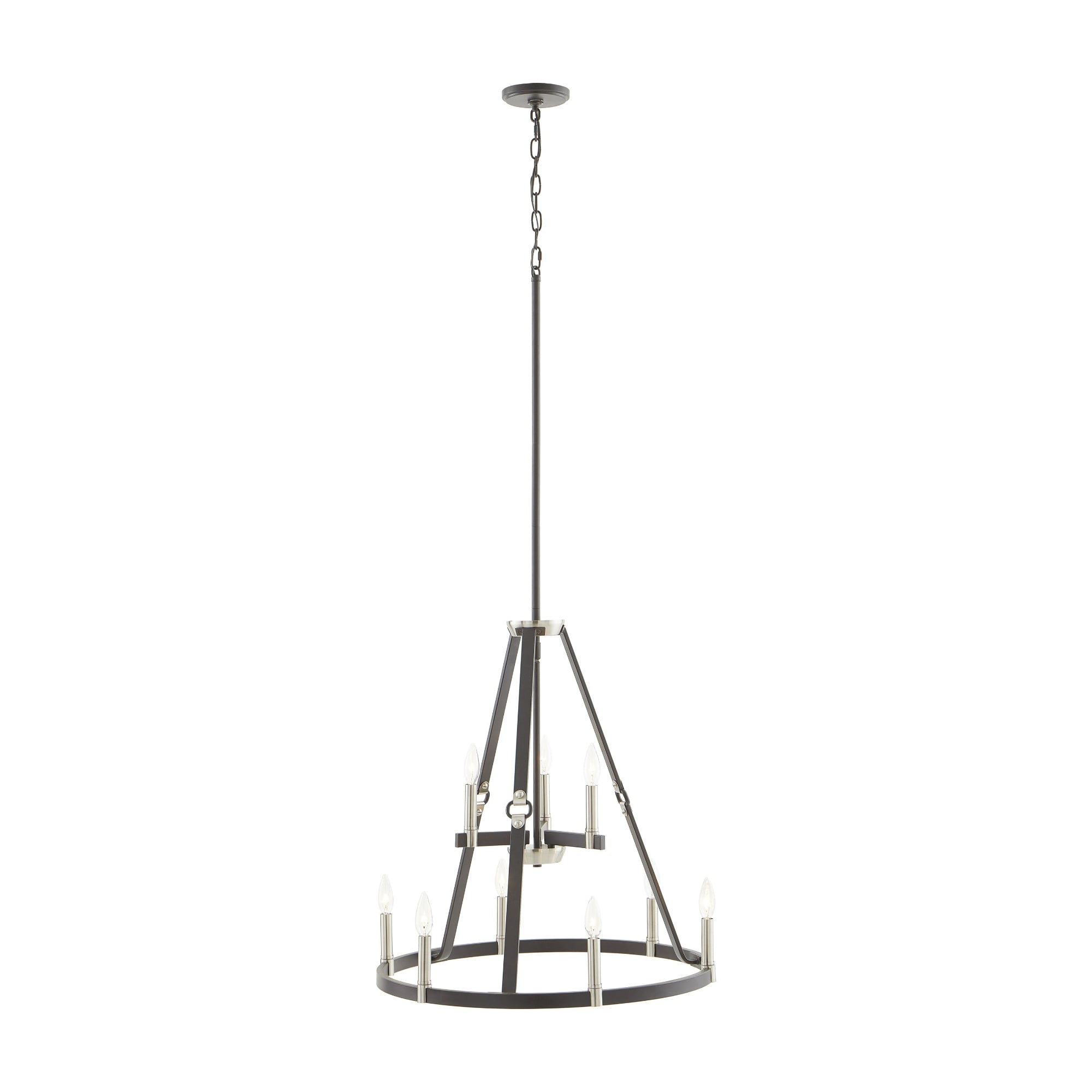 9-Light Two Tier Ceiling Chandelier - 32" - Painted Bronze