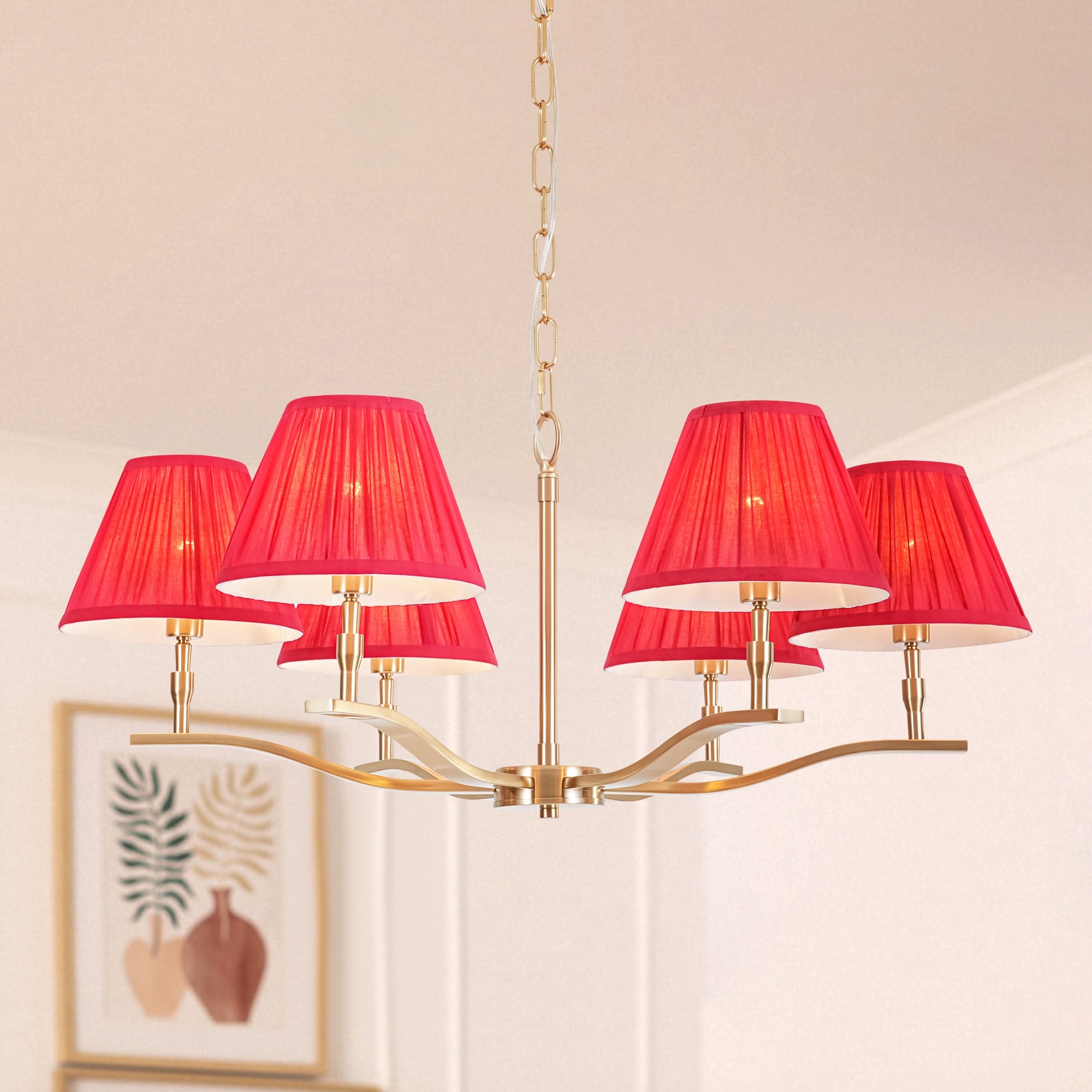 31.5" W Mid-Century Traditional Brass Finish Dimmbale Chandelier with Red Pleated Fabric Shades for Living & Dining Room