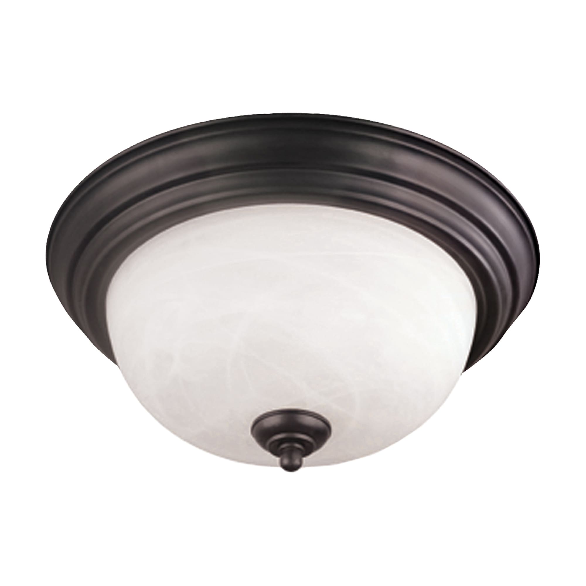 2-Light Flush Mount Ceiling Light Fixture with Frosted Shade - 14" - Painted Bronze