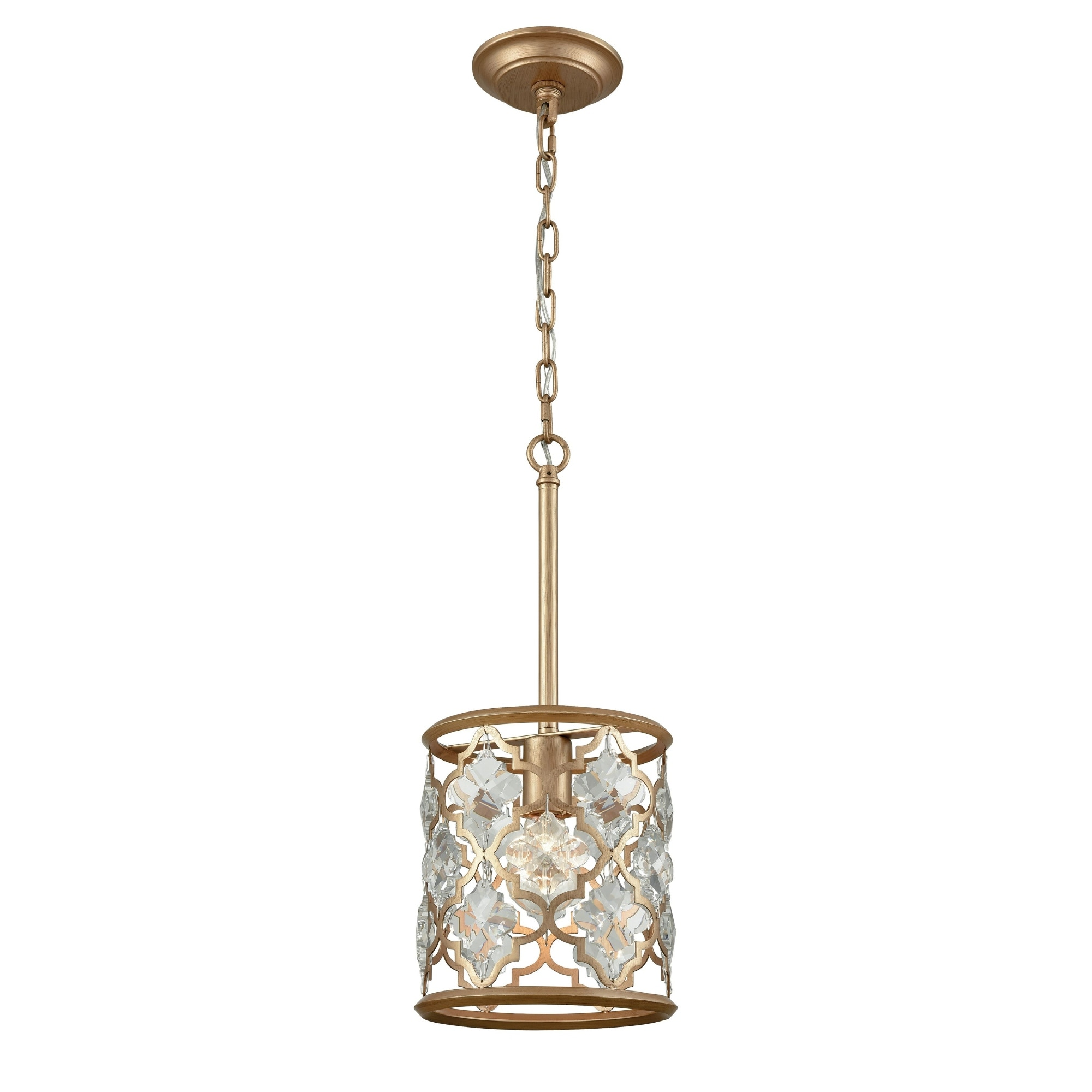 1-Light Quatrefoil Frame Hanging Mini Ceiling Pendant Light - 9" - Matte Gold