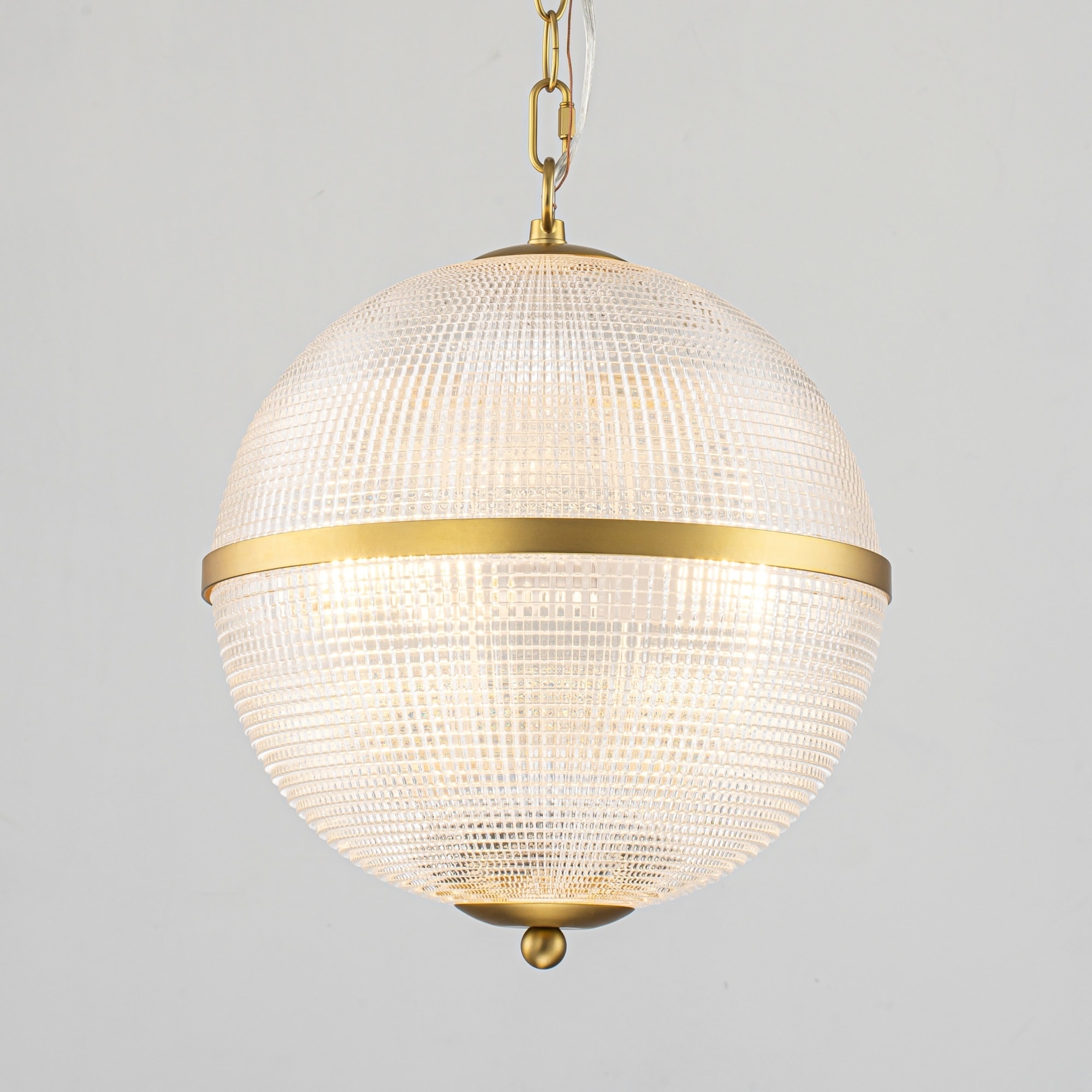 3-Light Mid-Century Modern Glam Gold Grid Glass Globe Chandelier Ceiling Light - 11.8 in. W x 13.39 in. H